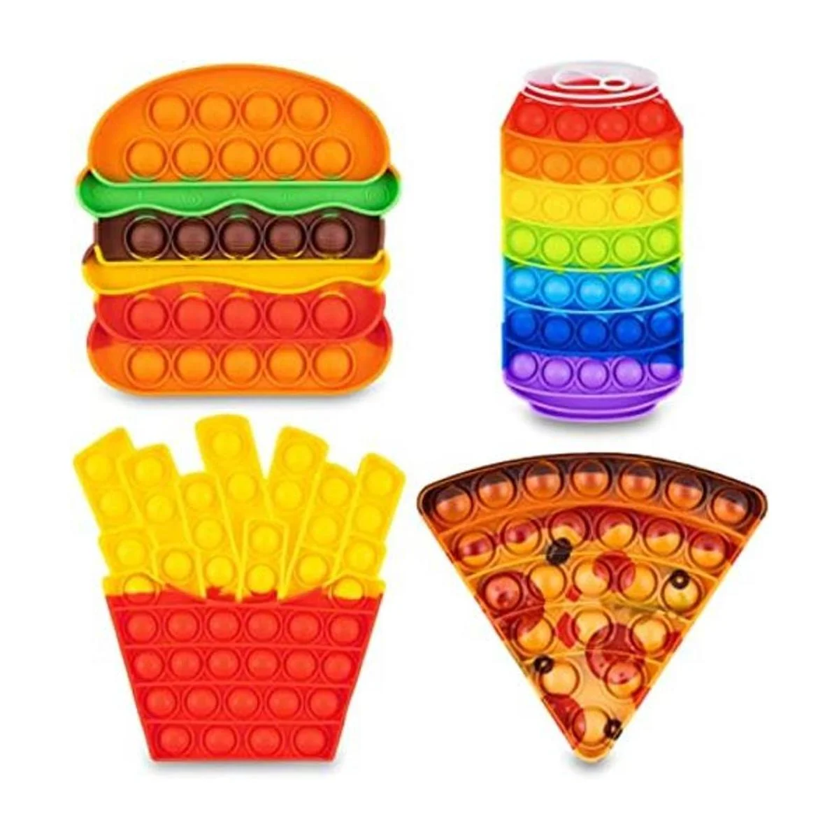 Pop Its Fidget Toys Pack 4 Alimento para aliviar el estrés Pop Its Poppers Fidget Poppers Juguete Aprendizaje para autismo Fritura Francesa, Pizza, Hamburguesa Popits Push Pop Bubble Pop Pop Sensory Toy para niños