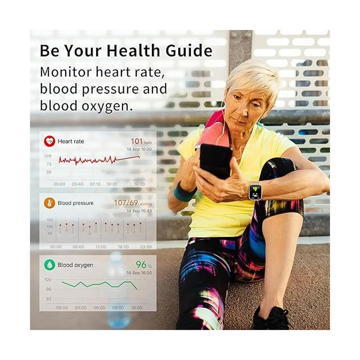 Popglory Reloj inteligente de recepción de llamadasdial de 1.85 pulgadas, rastreador de fitness con frecuencia cardíacaoxígeno en sangre, monitor de presión arterial, reloj de fitness con altavoz integrado para iOS y Android