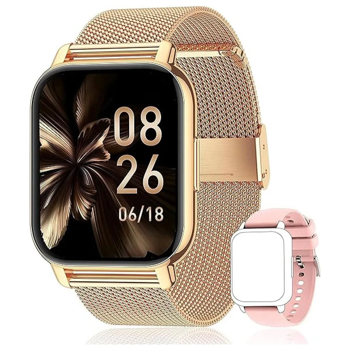 Pantalla a color HD de 1.85 pulgadas y 2 correas: la pantalla a color HD de 1.85 pulgadas presenta efectos visuales suaves. Es más moderno con una correa de acero inoxidable simple y elegante. Se incluye una correa de silicona de repuesto más en el paquete, con diferentes colores para cambiar el estado de ánimo. Puedes elegir cientos de caras de reloj HD en la aplicación y también puedes personalizar la esfera para mostrar tu propio estilo.