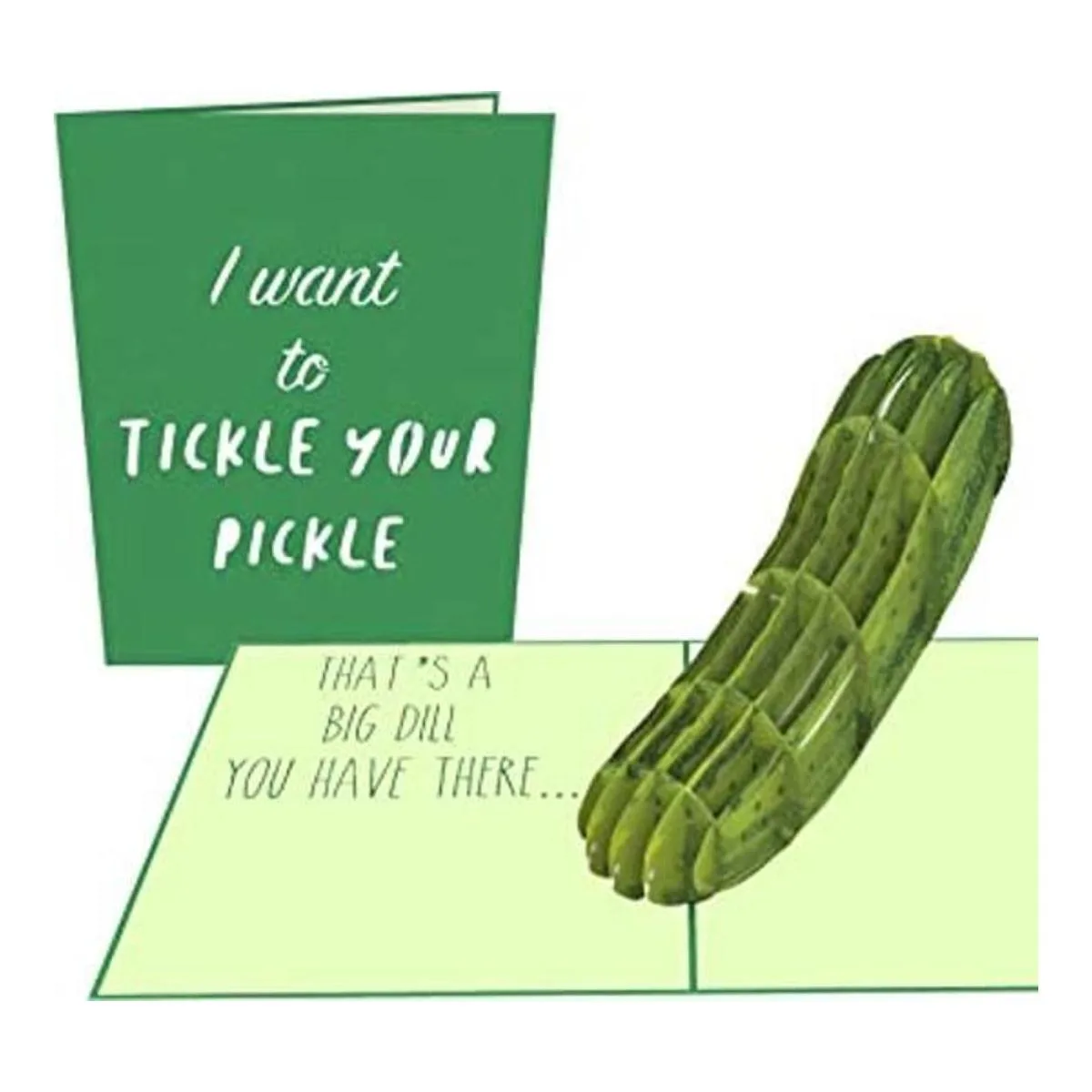PopLife Tarjeta de felicitación 3D con texto en inglés Naughty Pickle Pickle juguetón para cualquier persona, regalo porque sí, para el día del padre, felicitaciones, feliz cumpleaños, nuevo trabajo, tarjeta divertida para él, graduación, tarjeta divertida para obtener bien pronto, emoticono de pulgar arriba
