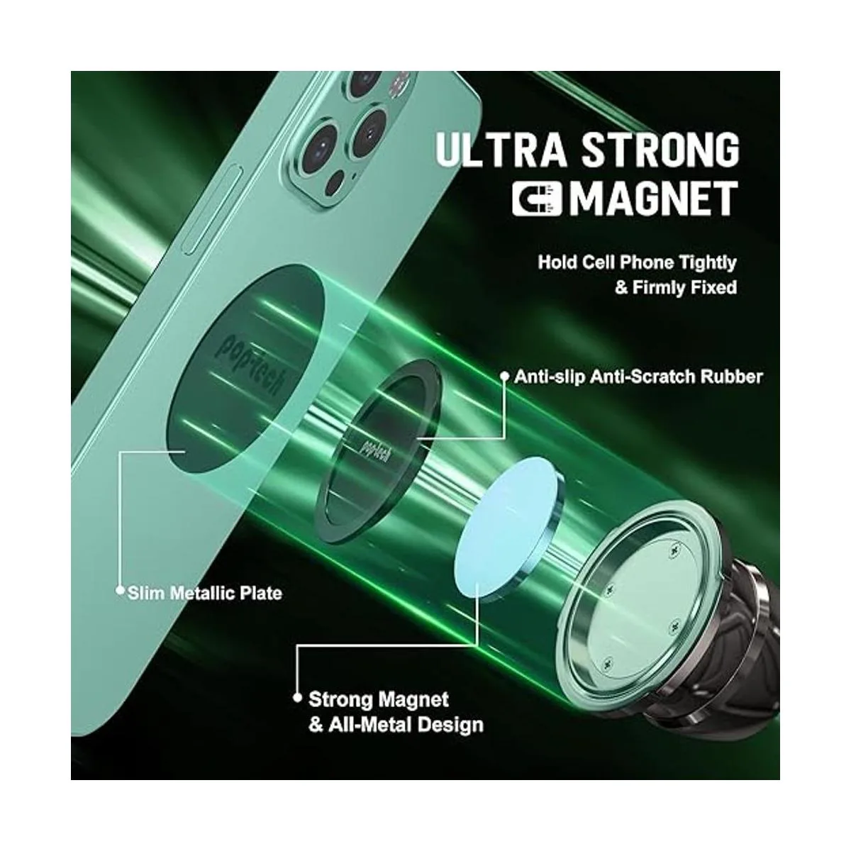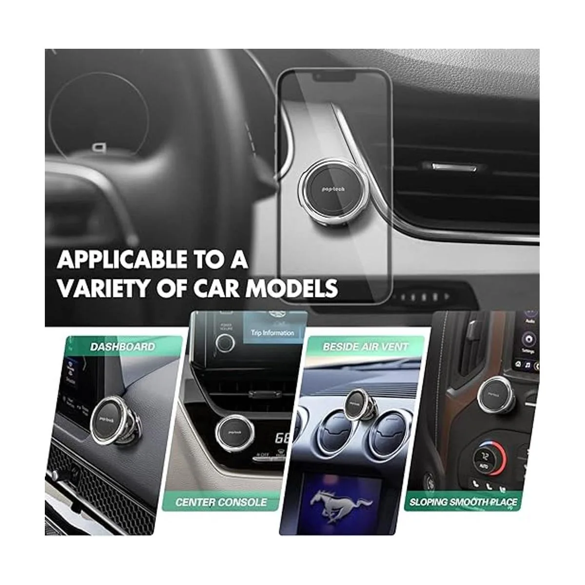 PopTech Soporte magnético de bola para teléfono de automóvil, soporte universal para teléfono celular, mini tablero giratorio de 360 grados y placa de metal para iPhone 13 Pro Max, tableta, agarre de enchufe, dispositivo móvil