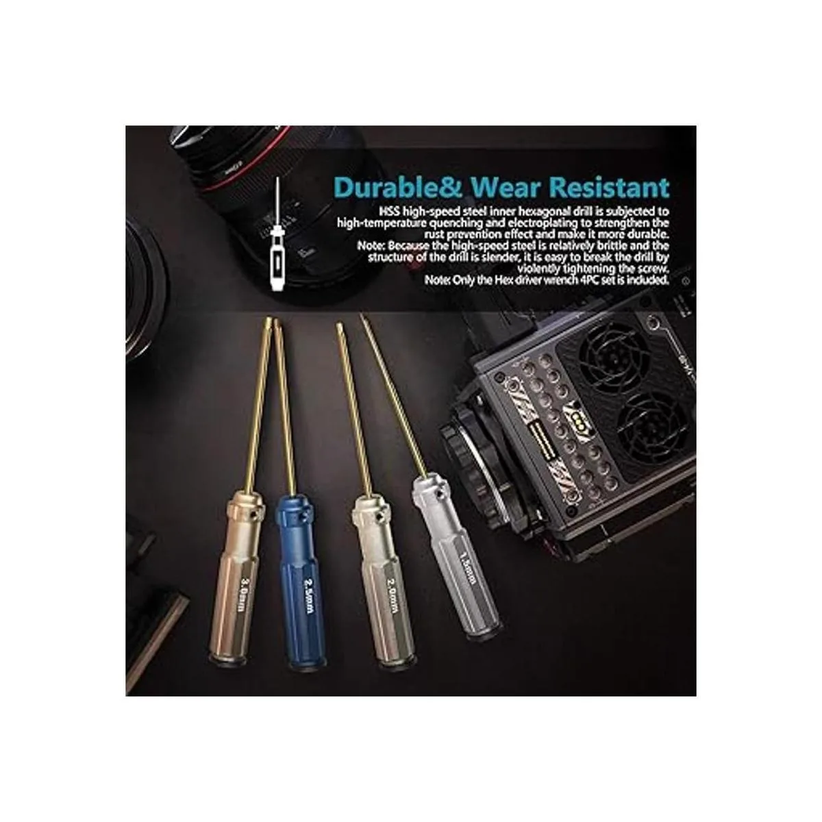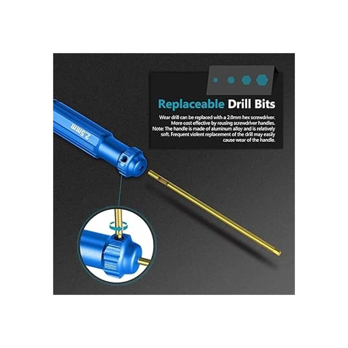 Portabrocas hexagonales TiNi de nitruro de titanio NEEWER. Juego de 4 unidades de 1.5mm, 2mm, 2.5mm, 3.0mm