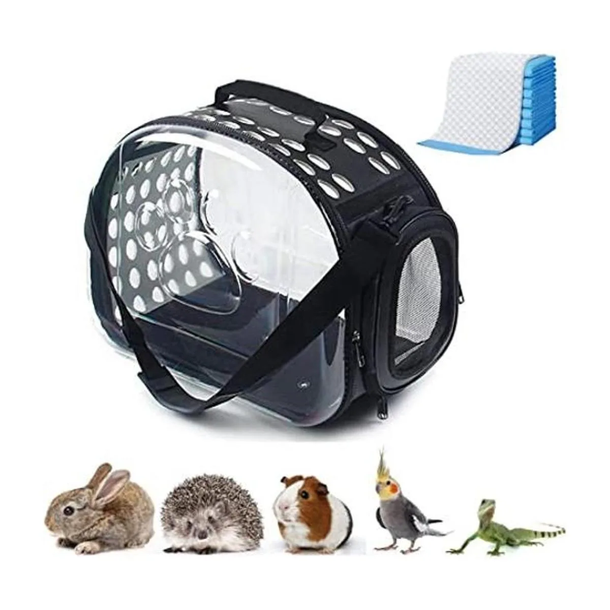 Tamaño: transportador de viaje para hámster de 14.2 x 7.9 x 8.6 pulgadas, 10 almohadillas de repuesto. Adecuado para animales pequeños como hámsters, ardillas, loros, tortugas, ratones y cobayas