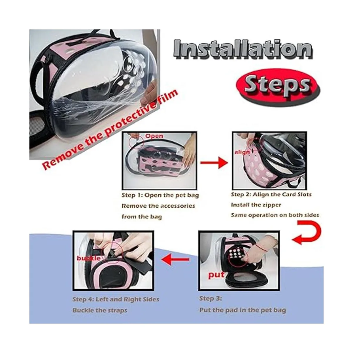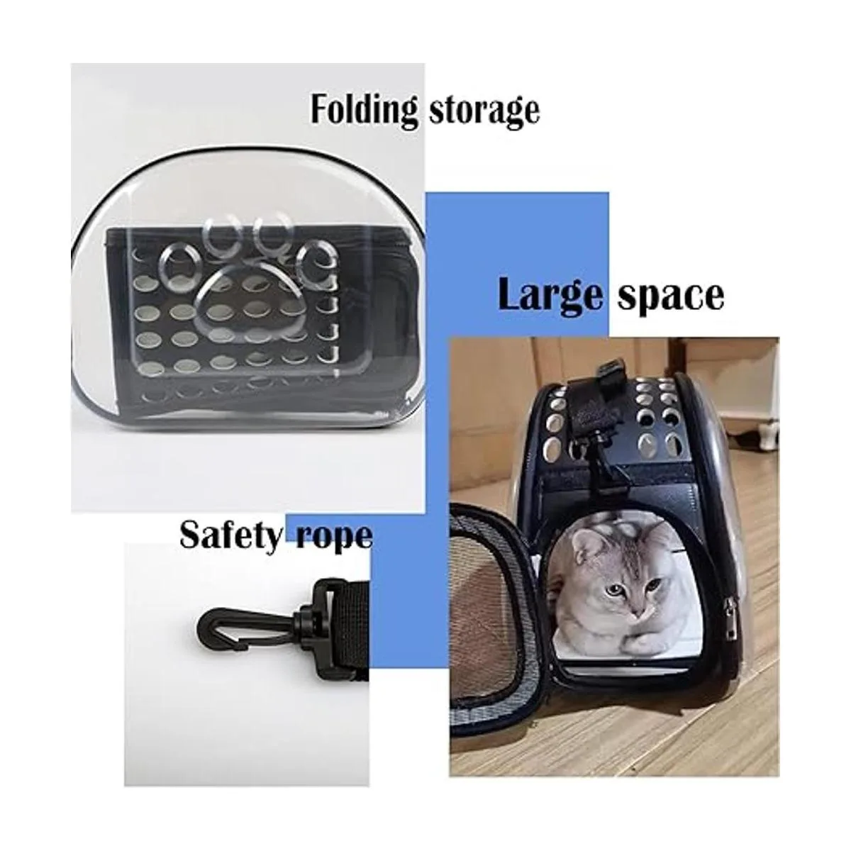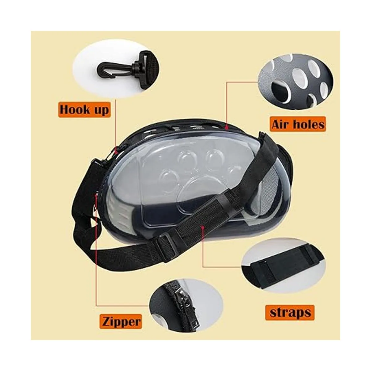 Diseño de cápsula espacial de moda: las correas de mano y las correas acolchadas ajustables proporcionan una variedad de opciones de transporte. El diseño de estilo cápsula permite a nuestras mascotas disfrutar del sol y el paisaje e interactuar con el mundo exterior. Diseño transparente de 180, amplio campo de visión, ya no en una pequeña habitación oscura