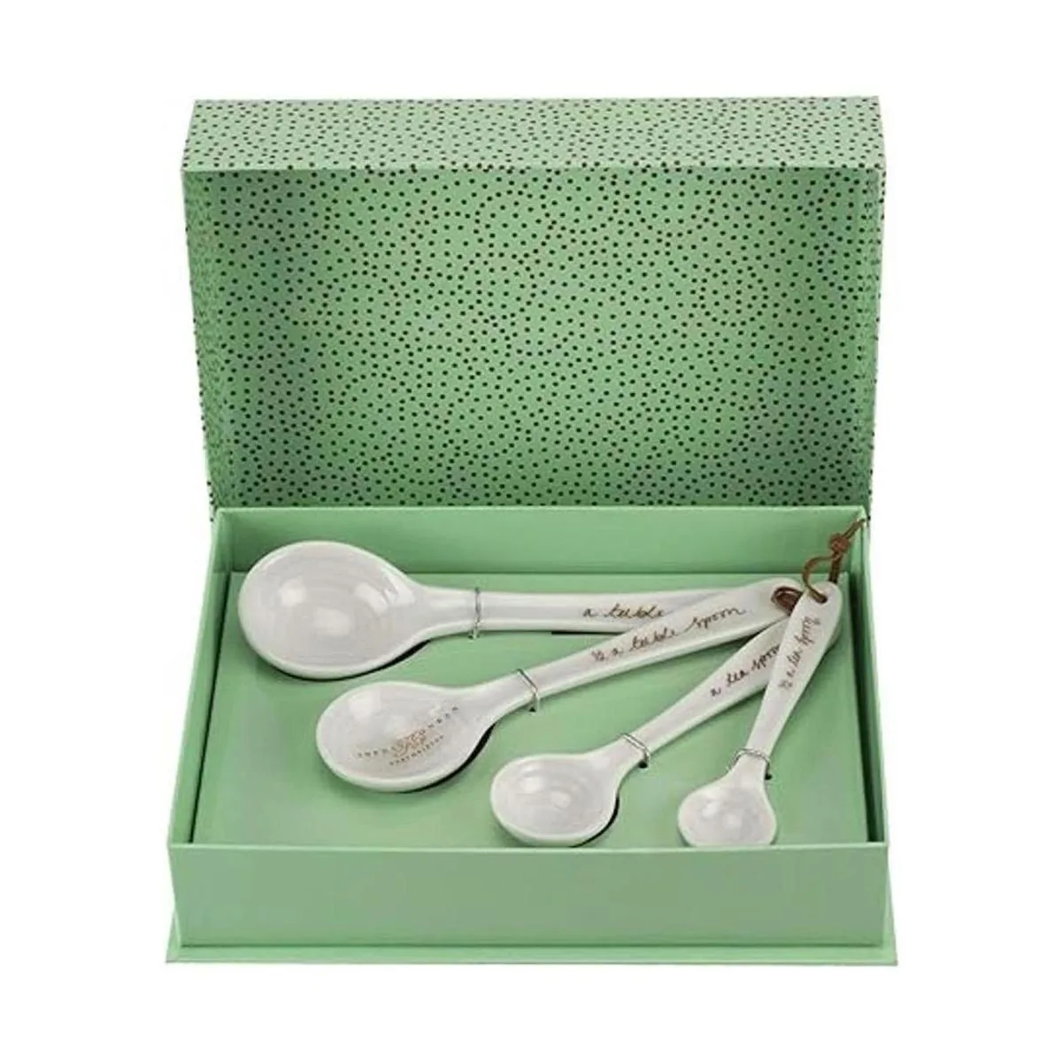 Especificaciones del producto: 4 cucharas medidoras, 1 cucharada, cucharada, 1 cucharada y cucharada. Hecho de porcelana fina. Apto para lavavajillas, microondas, congelador y horno.