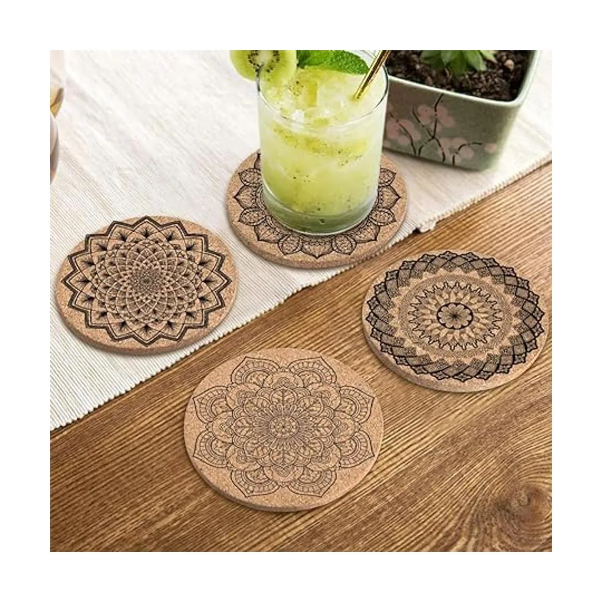 Apto para casi bebidas: los posavasos de corcho son de 4 pulgadas de diámetro y 1/5 pulgadas de grosor.