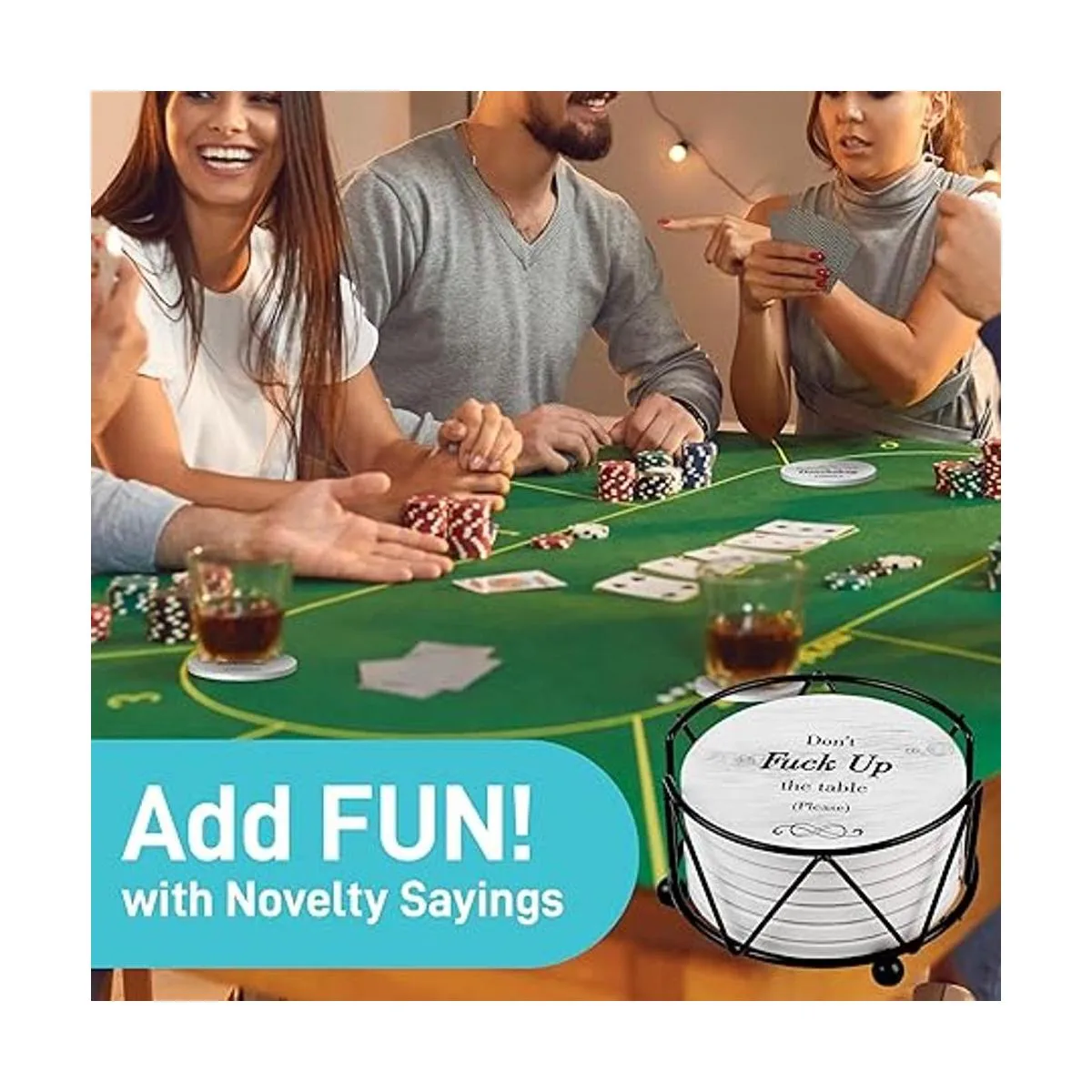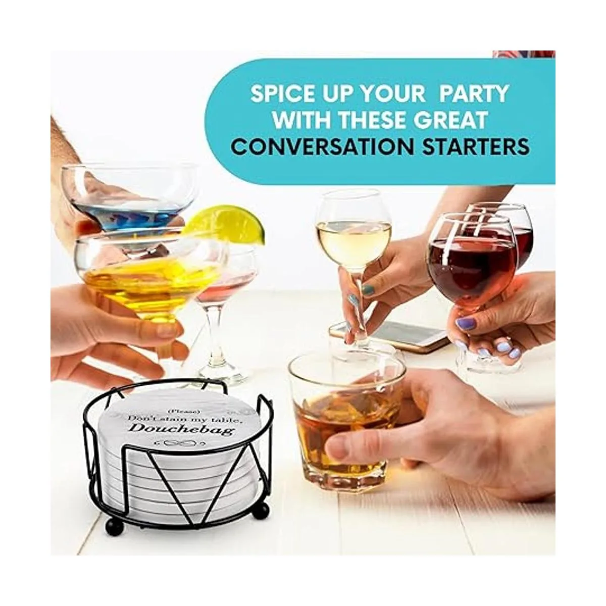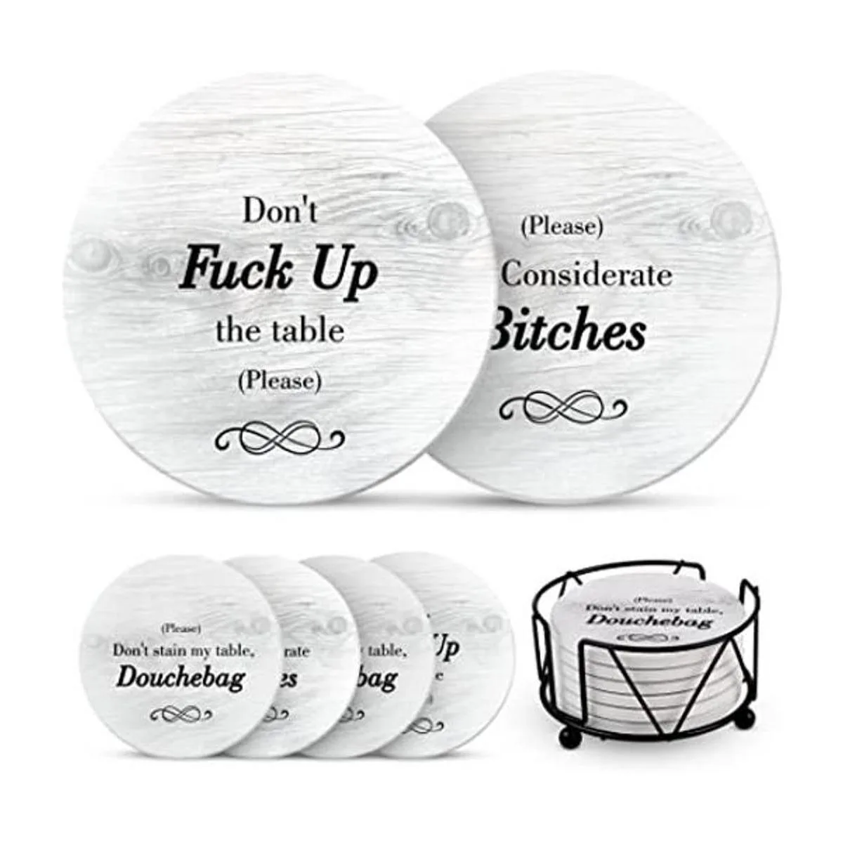 Posavasos divertidos para bebidas absorbentes con soporte, 6 piezas, juego de regalo novedoso, 3 diferentes leyendas regalo único para amigos, hombres, mujeres, inauguración de la casa, cumpleaños, elefante blanco, o fiesta de vacaciones.
