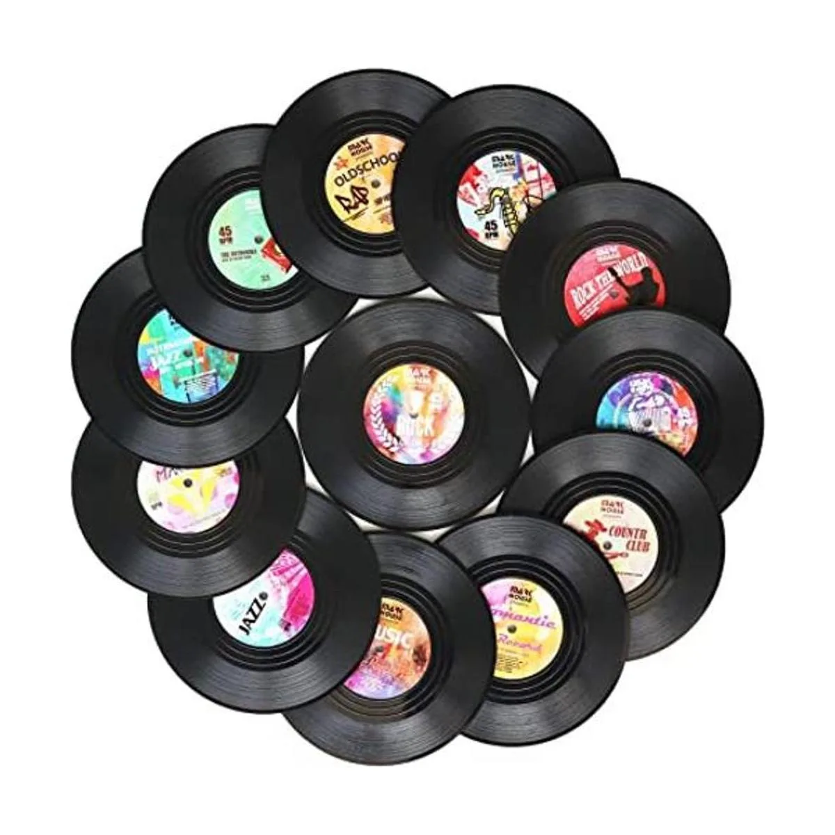 Perfecto para los amantes de los muiscos: juego de 12 en una maravillosa caja de regalo de diseño, parecen discos de vinilo reales, cada detalle, lindo y genial, gran regalo para los amantes de la música y perfecto para fiestas de los años 80.