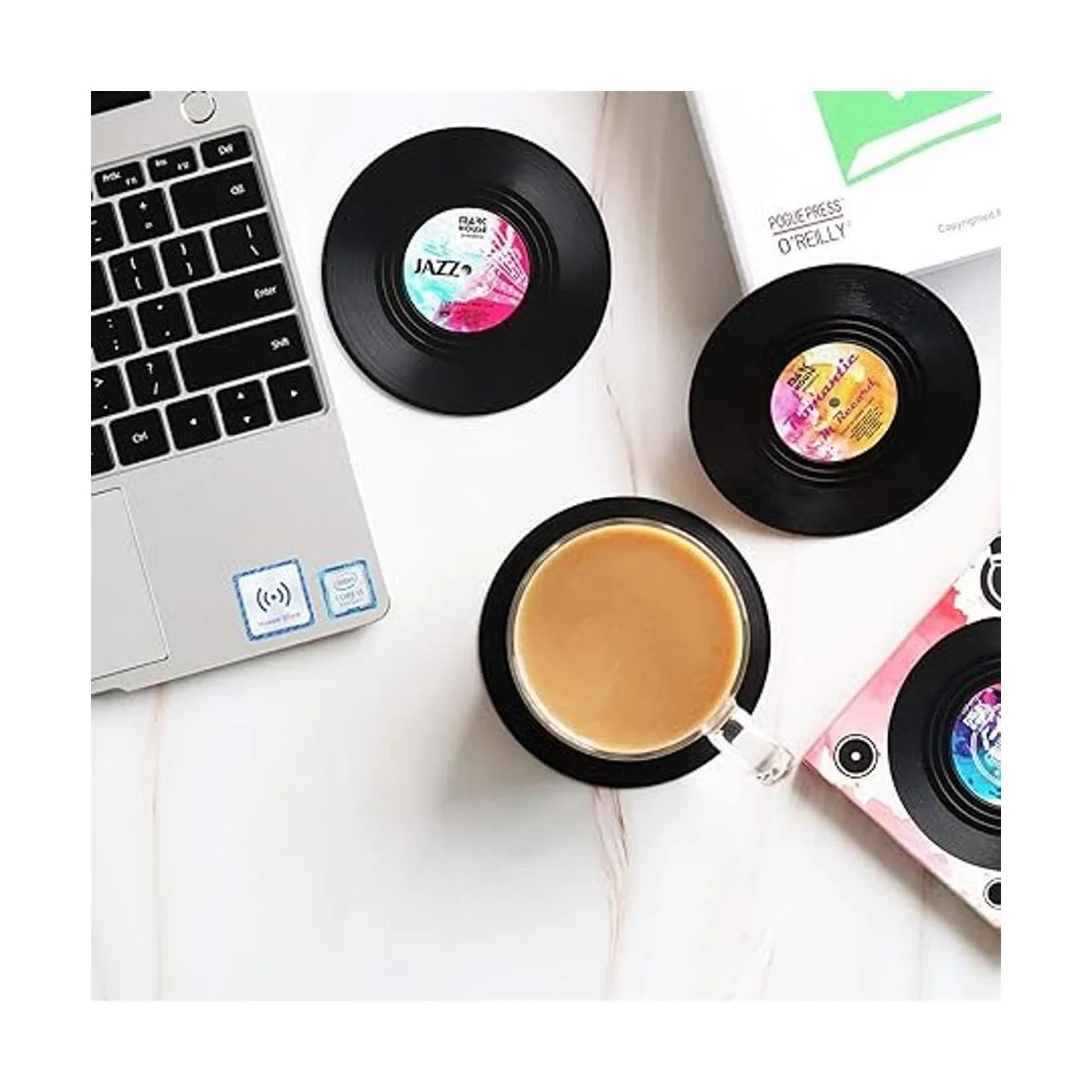 Posavasos divertidos para bebidas, juego de 12 piezas de conversación, refranes de disco de vinilo, posavasos para bebidas musicales Regalos de inauguración de la casa, decoración de regalo de inauguración de la casa, ideas de regalos para el registro de bodas