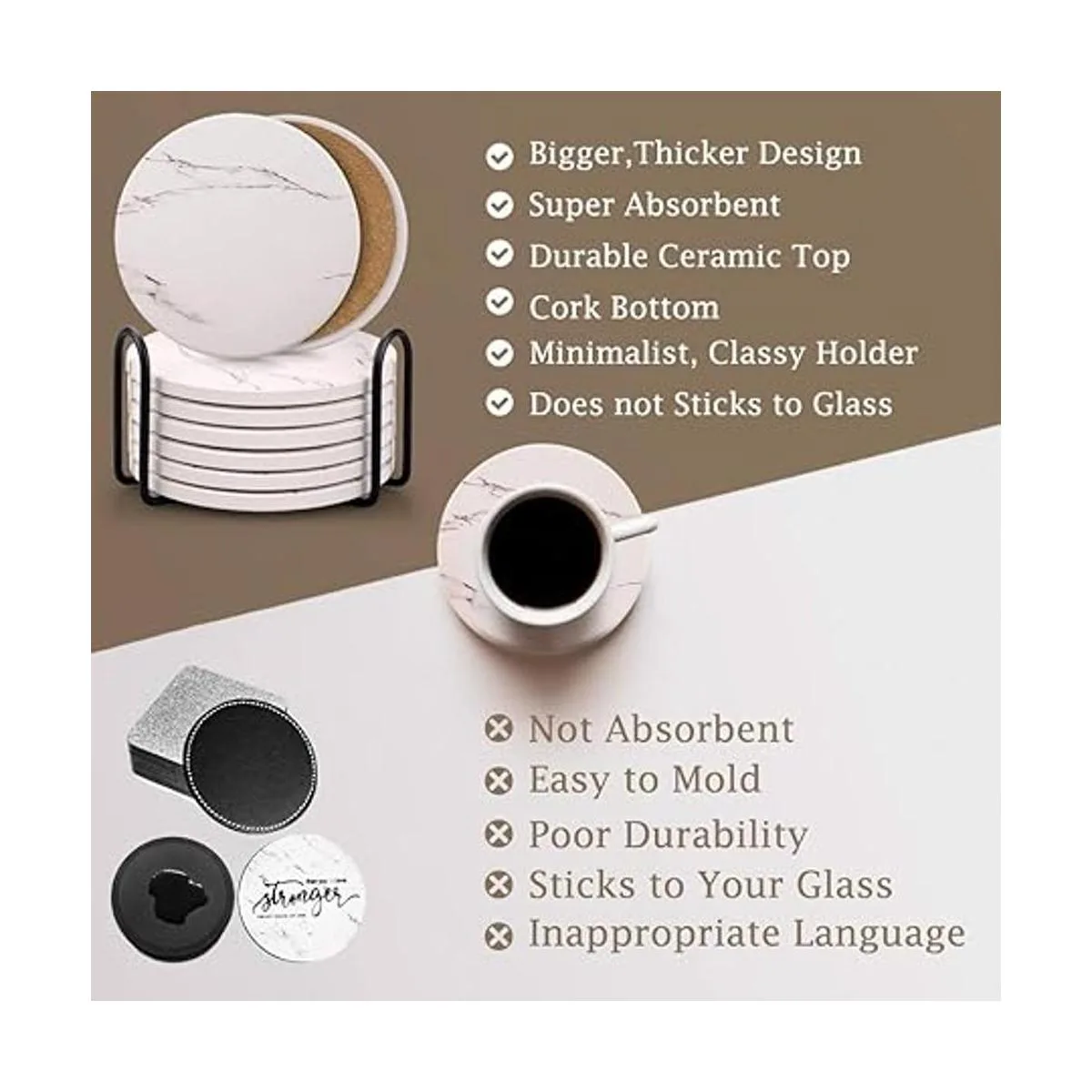 Parte superior súper absorbente: nuestros posavasos de cerámica te ayudan a evitar manchas de larga duración de una manera elegante. La parte superior de cerámica proporciona más absorción que otros posavasos hechos de corcho, cuero, papel, cartón, goma. Puede absorber manchas de café y cola derramadas en 1015 segundos.