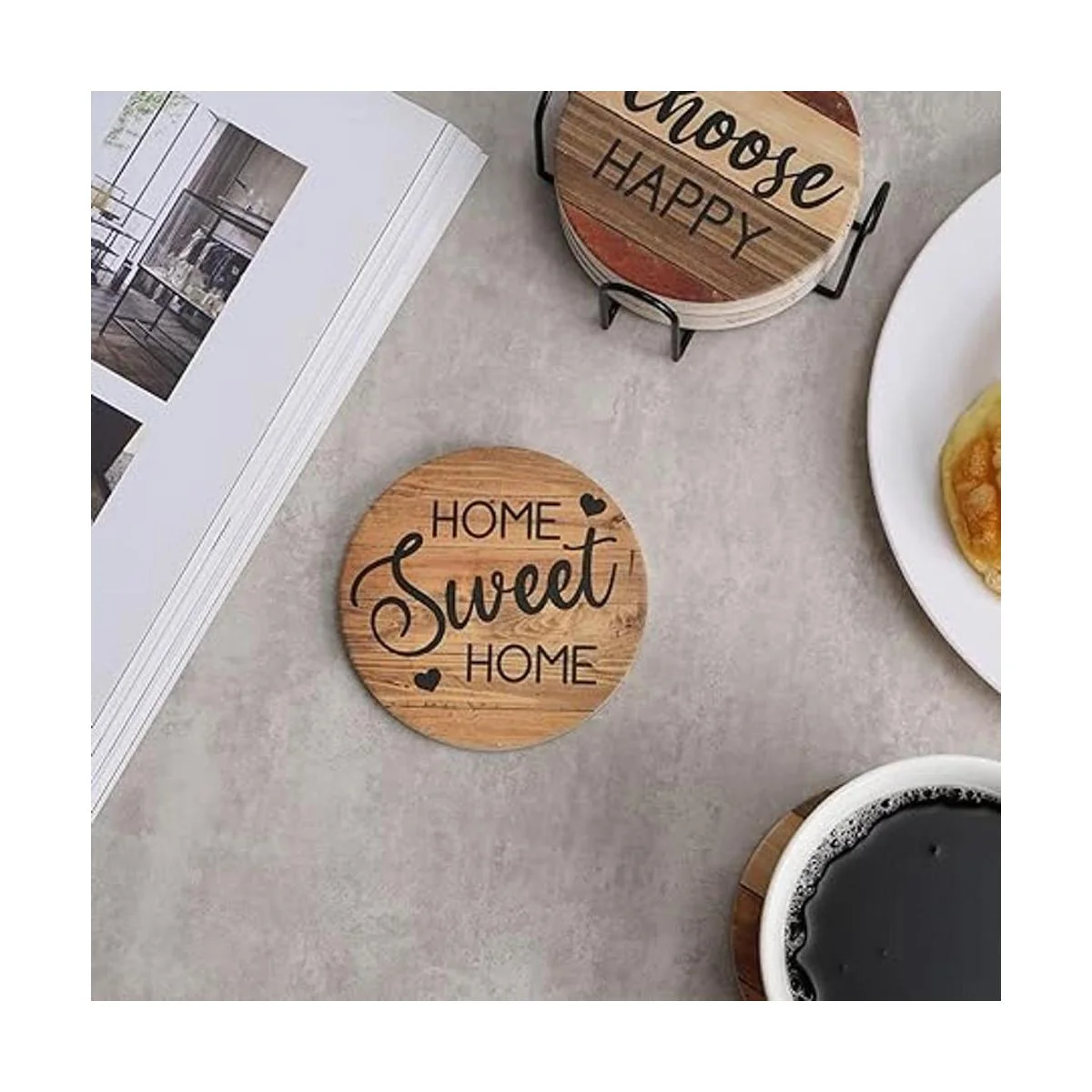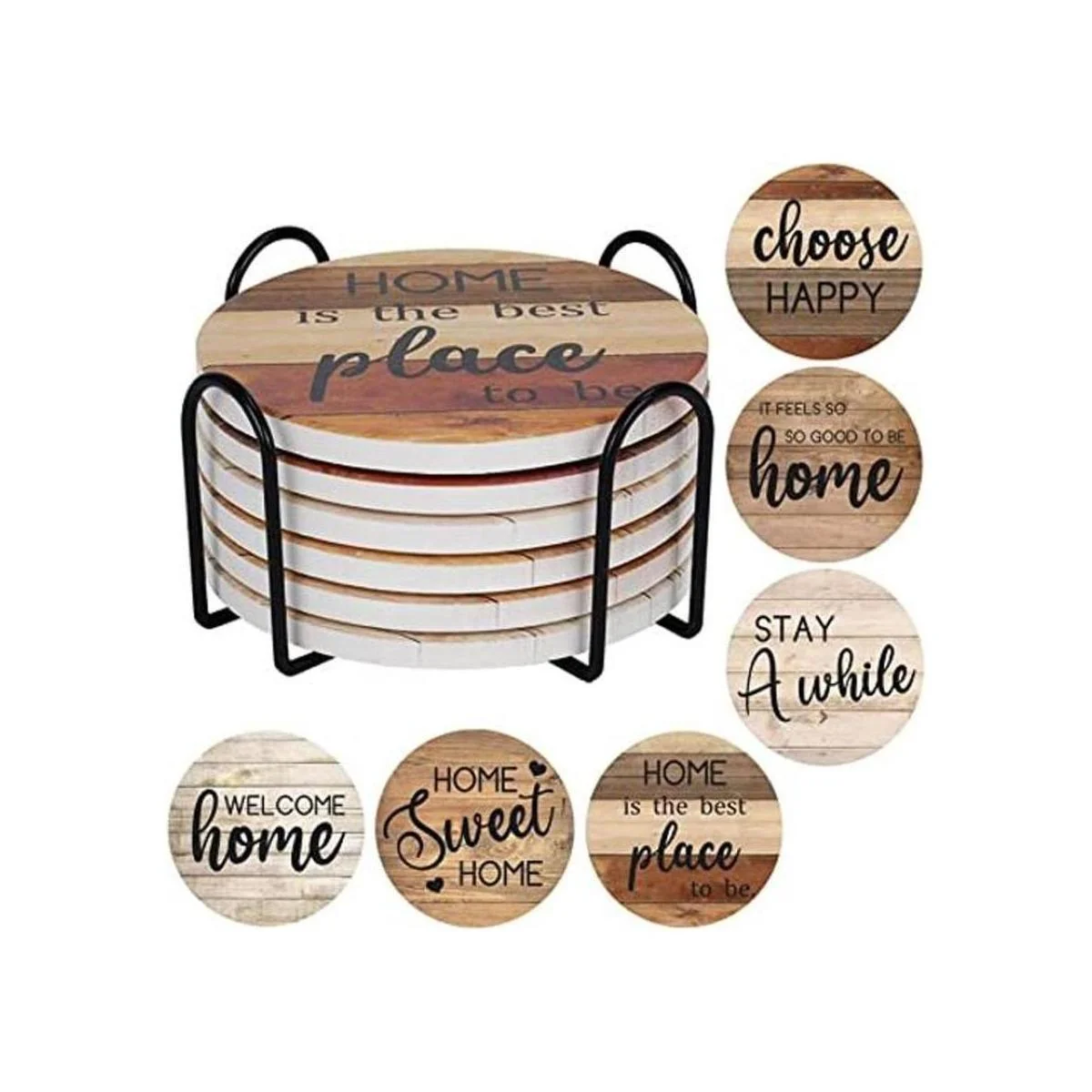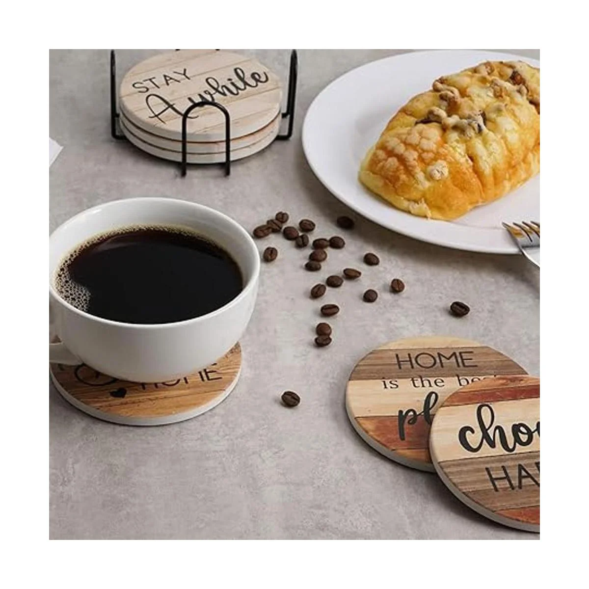 Posavasos para bebidas rústicas de piedra de corcho, juego de 6 posavasos para bebidas con soporte para mesa de madera, regalo de inauguración de la casa, apartamento para el hogar, cocina, decoración de casa, juego de regalo para mujeres y hombres