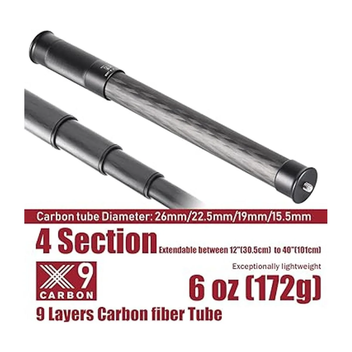 Mayor capacidad de carga: carga útil de hasta 33.1 lbs en la extensión máxima. Excepcionalmente ligero de solo 6.07 oz con un tubo de fibra de carbono completo.