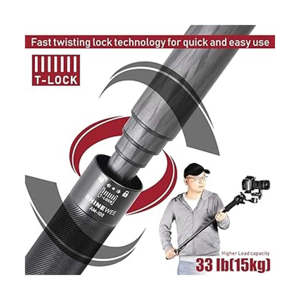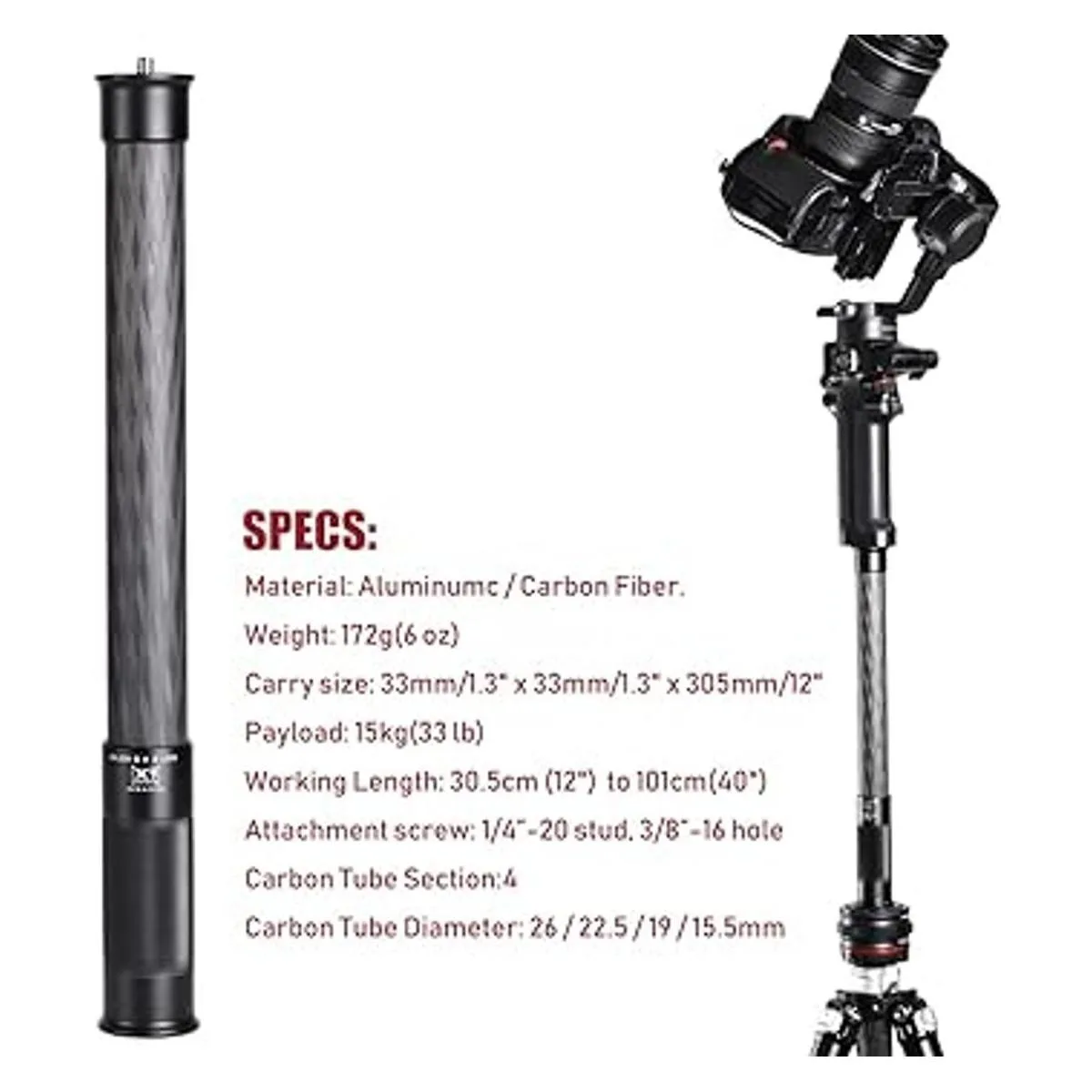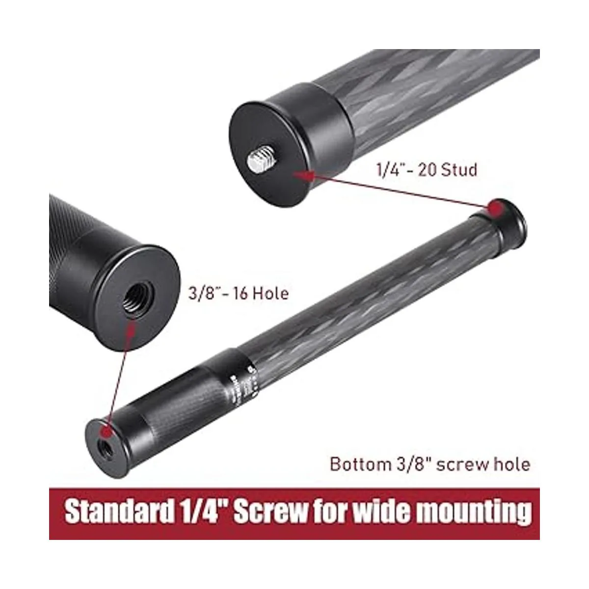 Poste de extensión de fibra de carbono, tubo de 4 secciones, montaje de tornillo de 14 pulgadas compatible con estabilizador de video de cardán de cámara de teléfono, barra ligera para fotografía