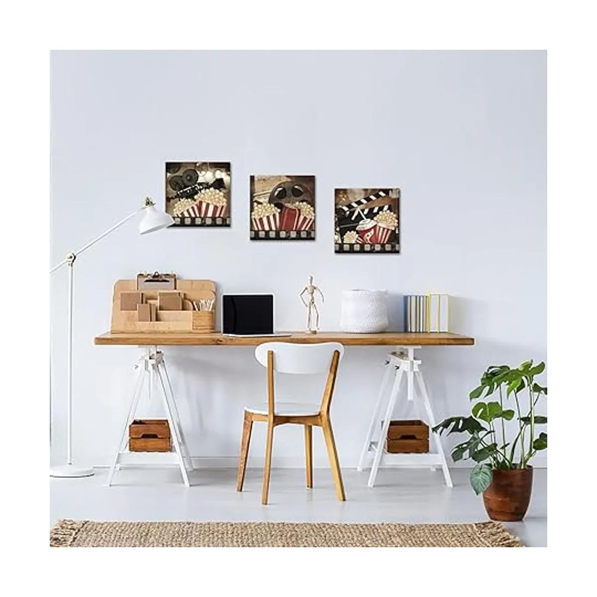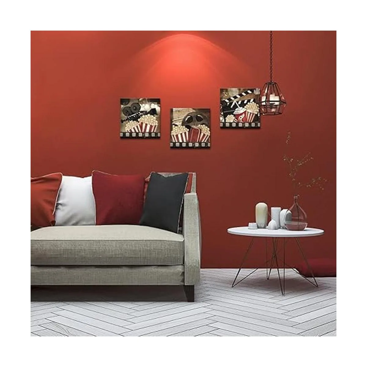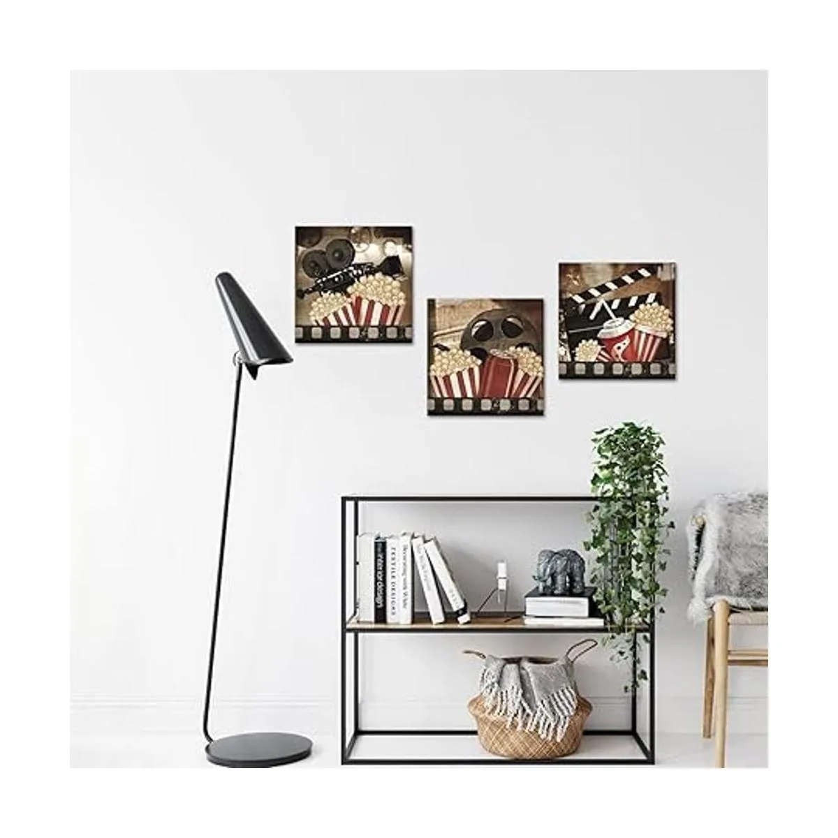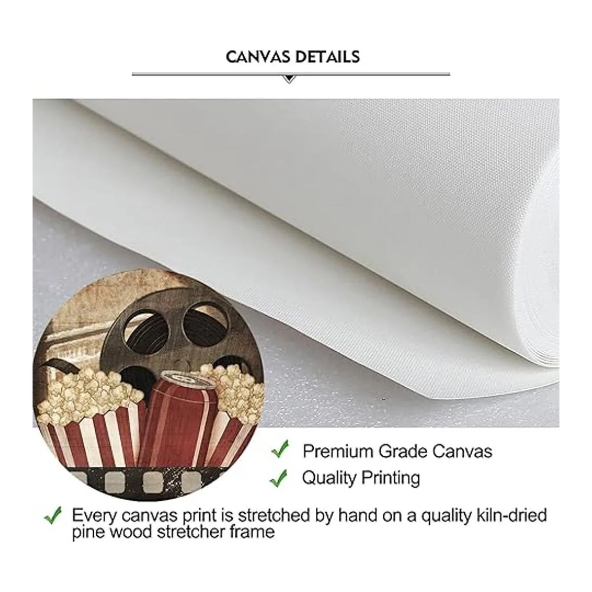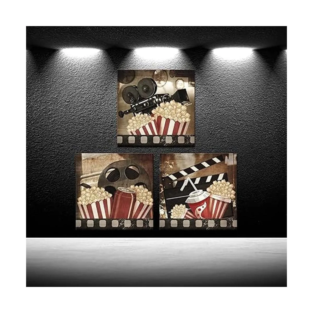 Póster artístico de lienzo de película vintage en negro y rojo, carrete de película clásico, imágenes de palomitas de maíz, impresas en lienzo, estiradas y enmarcadas, listas para colgar, decoración de cine en casa, cada tamaño de 12 x 12 pulgadas pequeño