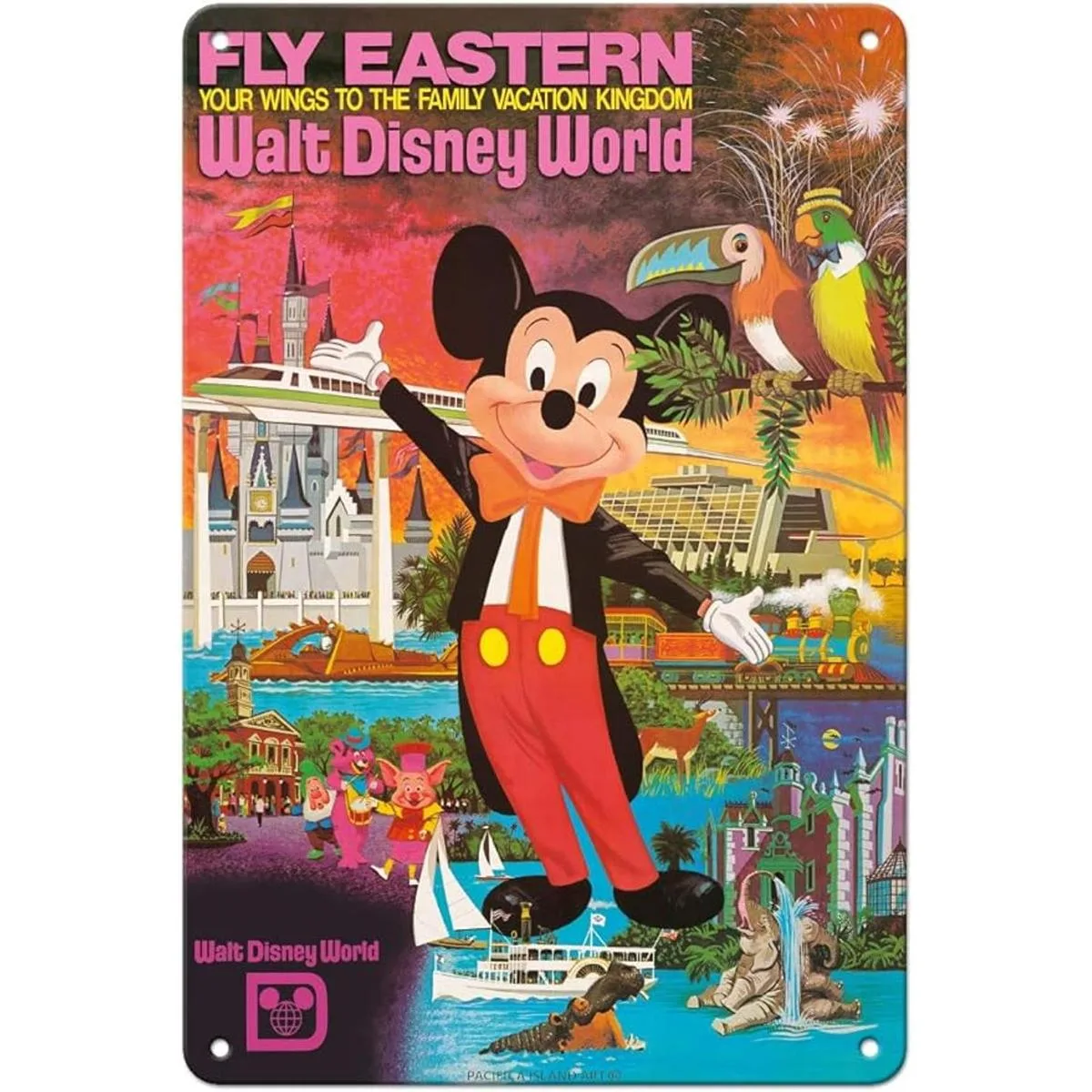 Póster de Pacific Island Art Walt Disney World Fly Eastern Airlines Orlando, Florida Vintage Airline Travel Póster c.1980 Fine Art Print