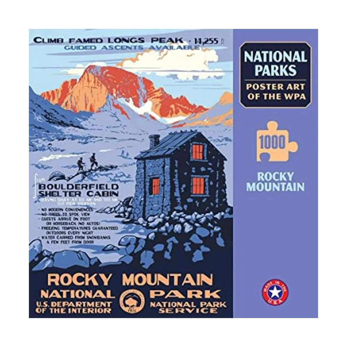 Póster del parque nacional de Rocky Mountain, arte de los juegos de rompecabezas WPA 1000 para niños y adultos impreso en Estados Unidos