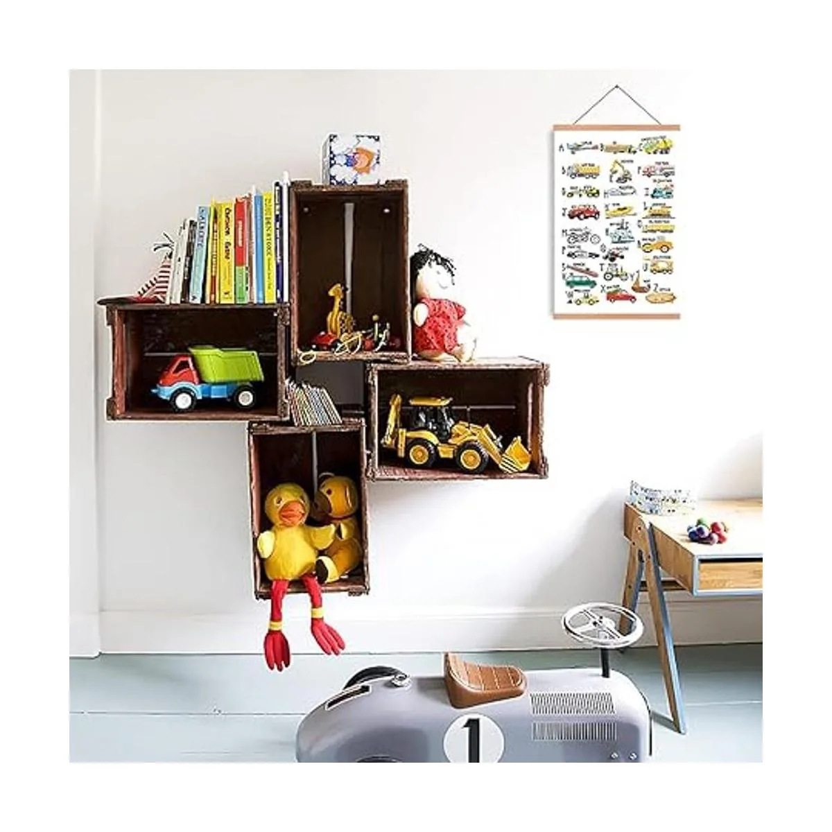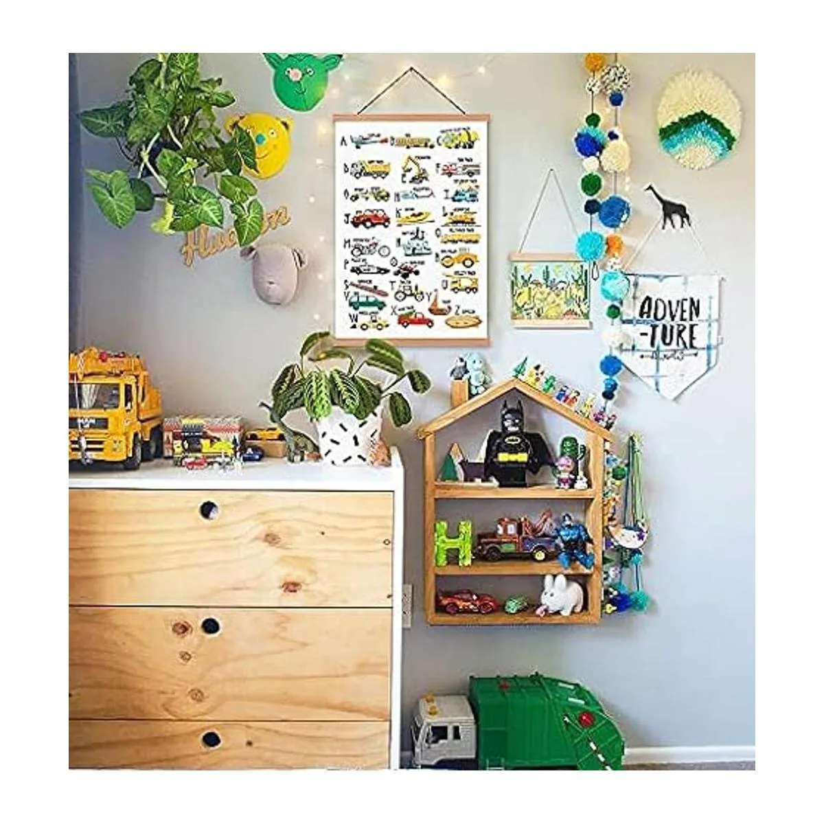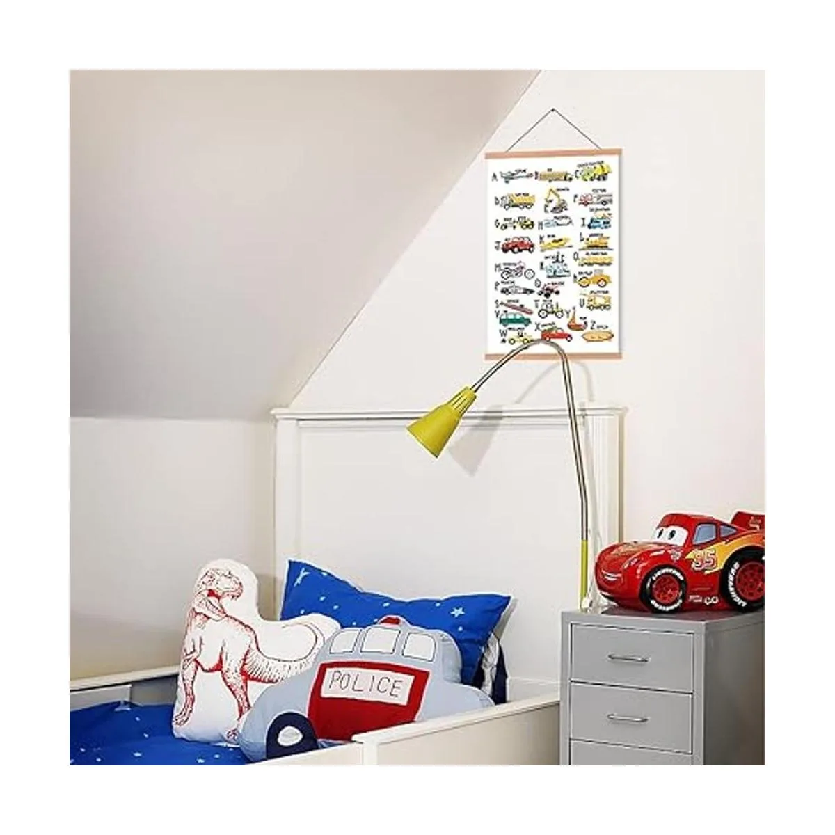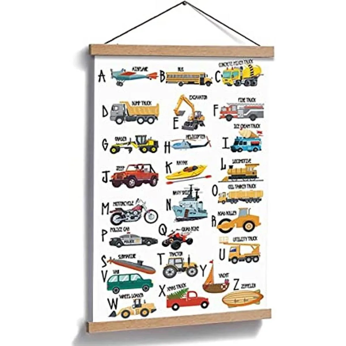 Lienzo perfecto: este inspirador póster artístico del alfabeto y los coches puede dejar que tu pared añada algunos colores y traiga diversión rodee a tus hijos todo el tiempo.