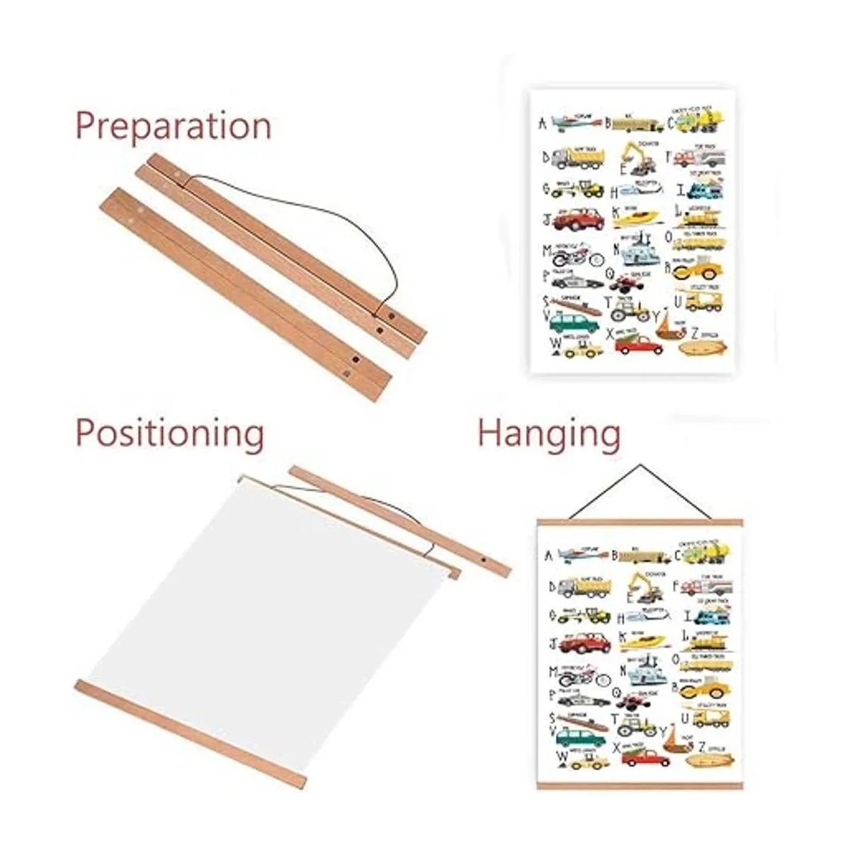 Póster magnético de madera natural con marco para colgar en lienzo del alfabeto colorido, impresión de arte de pared, imagen de camión de construcción de dibujos animados, kit para colgar marcos de 11.0 x 17.7 in