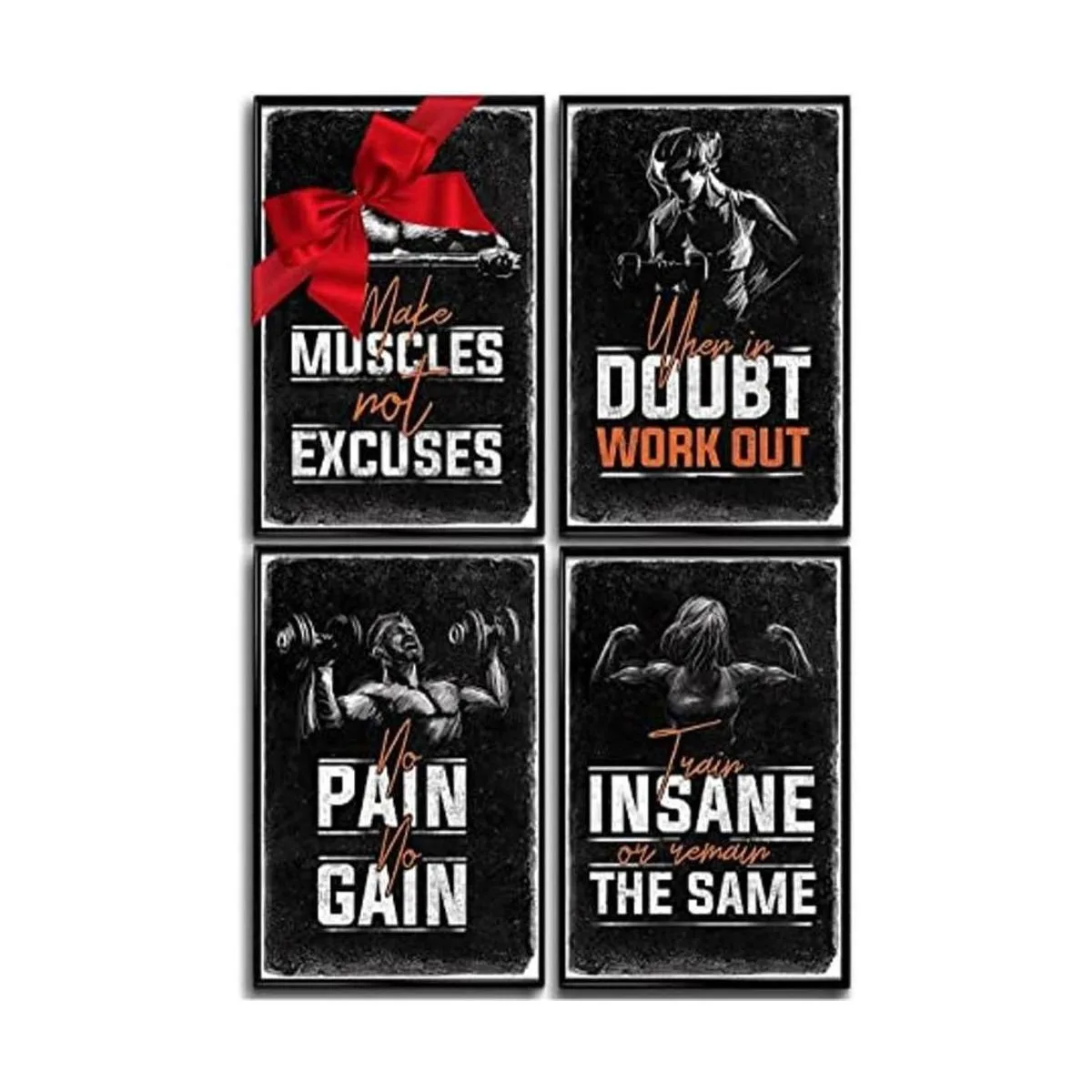 Pósters de gimnasio para decoración de gimnasio en casa, carteles motivacionales para gimnasio, carteles de entrenamiento para gimnasio en casa, póster motivacional, carteles de fitness, decoración de sala de entrenamiento, carteles inspiradores, arte de pared de gimnasio, juego de 4 unidades de 11 x 17 pulgadas