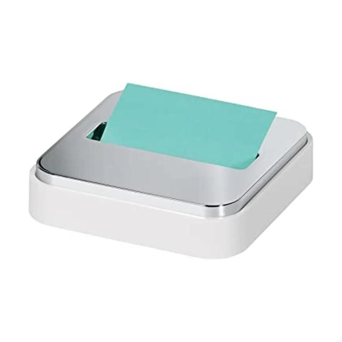 Postit Dispensador de adhesivos, 3 x 3 pulgadas, blanco y plateado, fácil dispensación con una sola mano STL330W