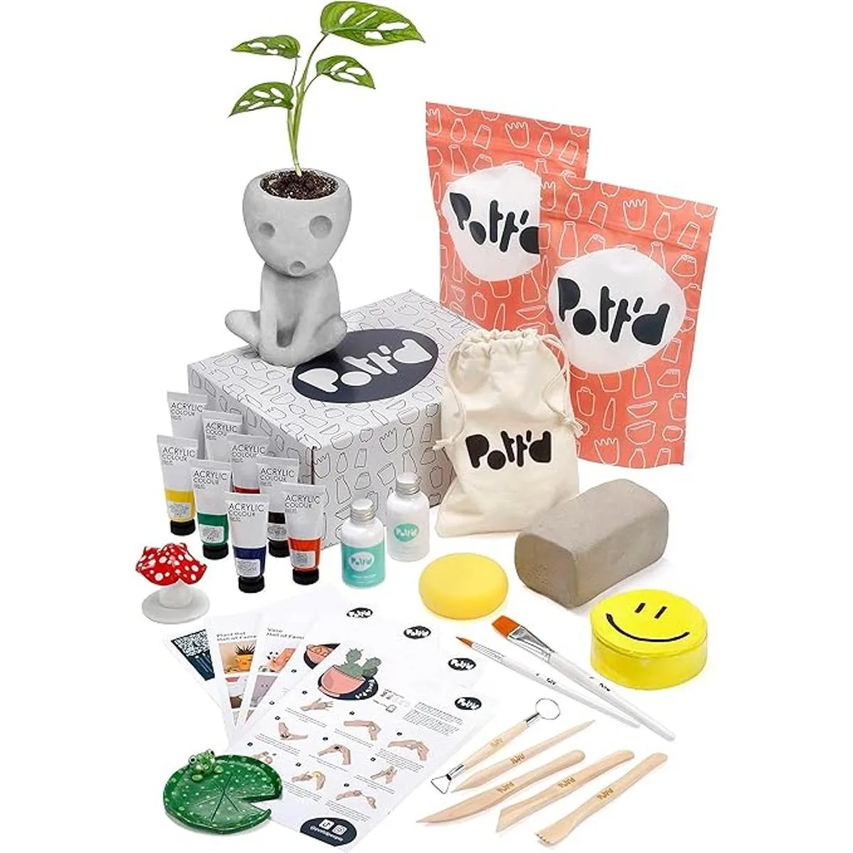 Pottd Home Kit de cerámica de arcilla seca al aire para principiantes, kit de cerámica para adultos. El kit incluye arcilla de secado al aire, herramientas, pinturas, pinceles, sellador, guía idioma español no garantizado