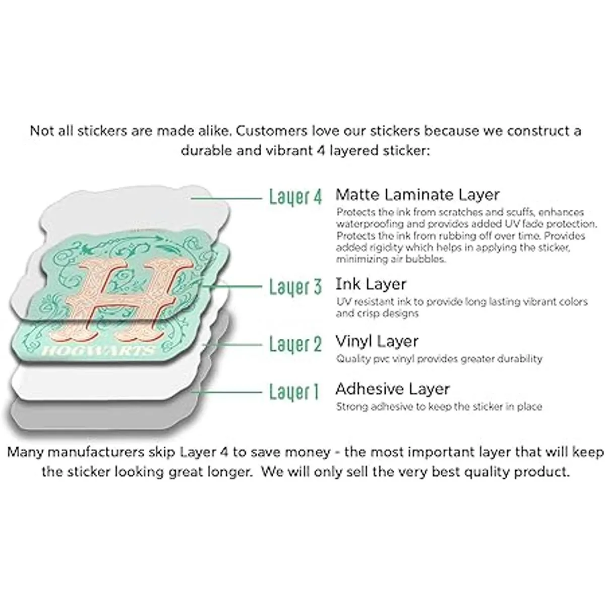 Alta calidad: estas calcomanías con licencia oficial están hechas de vinilo de alta calidad y selladas para proporcionar una impermeabilidad superior y protección UV. El fuerte adhesivo mantendrá las calcomanías en su lugar. Mejor cuando se utiliza en superficies lisas y duras. No están diseñados para uso prolongado en exteriores.