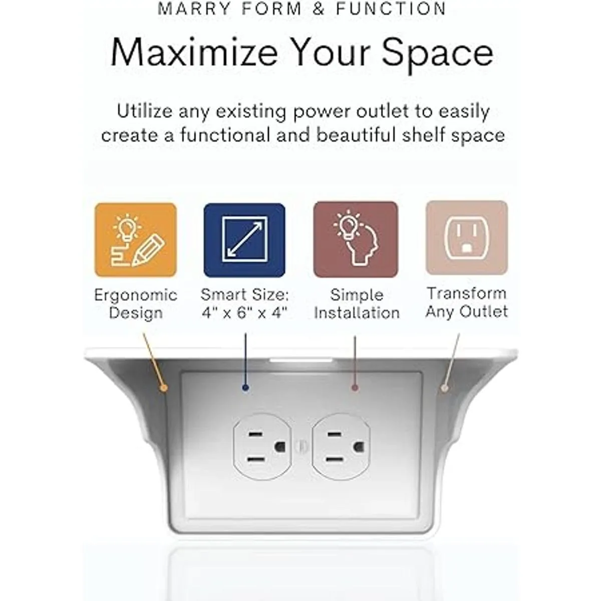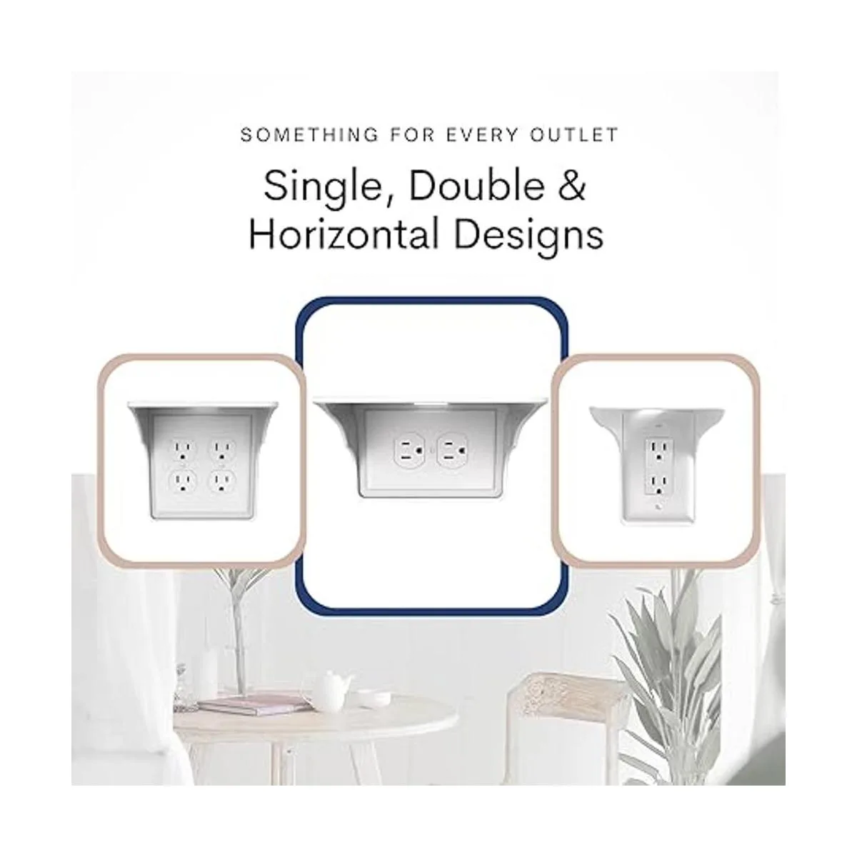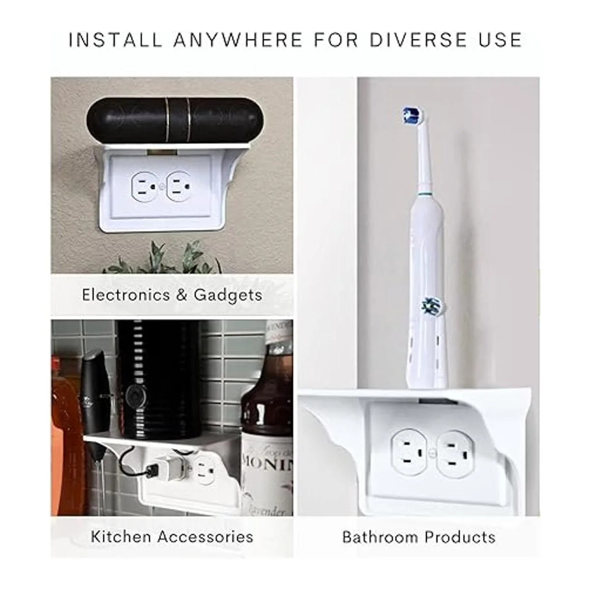 Power Perch Estante horizontal para toma de corriente, 1 unidad, color blanco, organizador de pared para baño, cocina, dormitorios, gestión de cables y fácil instalación