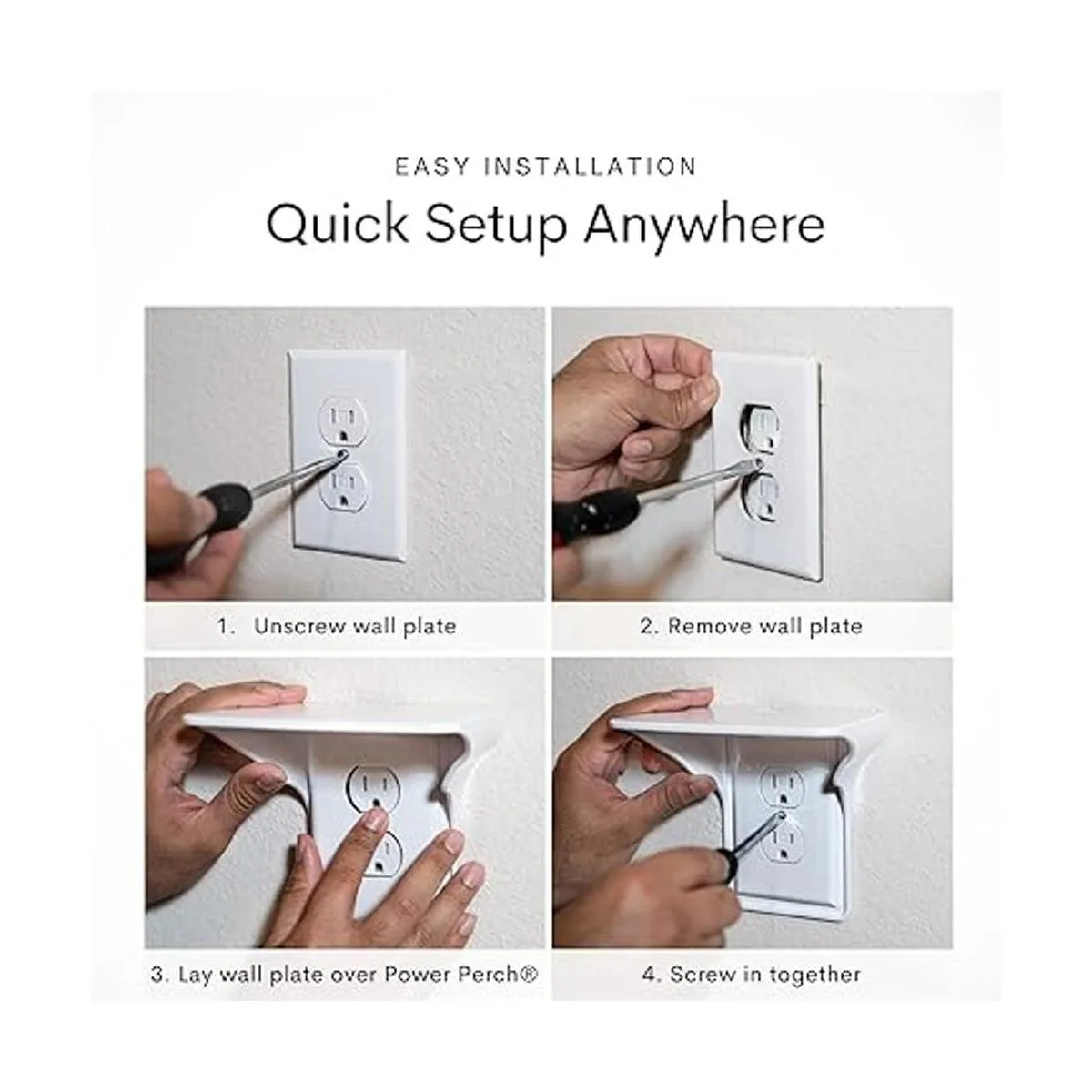 Maximiza el espacio. Perfecto para ahorrar espacio en cualquier habitación, Power Perch te permite crear un estante adicional en segundos utilizando tu cubierta de toma existente. Capacidad para artículos de hasta 10 libras para cepillos de dientes, dispositivos electrónicos y altavoces inteligentes como Google Home y Echo.