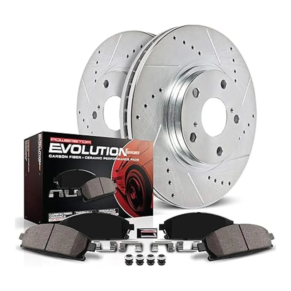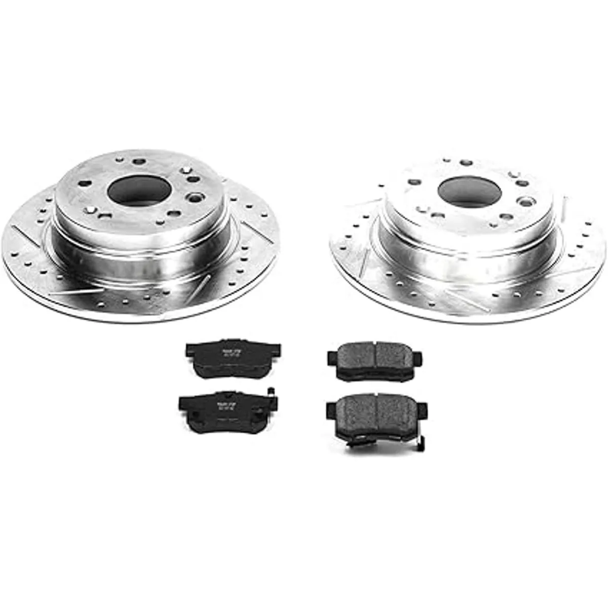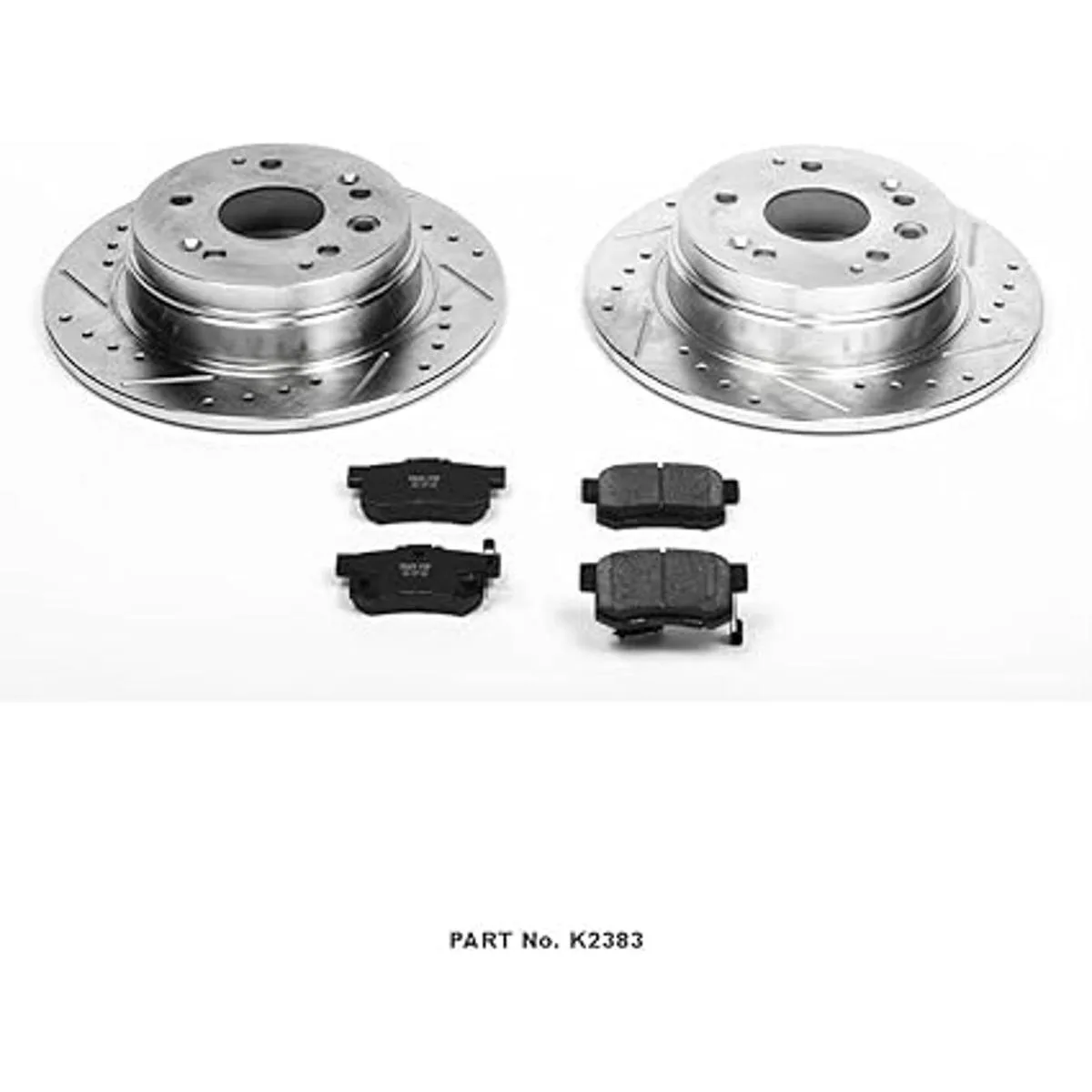 Power Stop K2383 trasero Z23 pastillas de freno de fibra de carbono con kit de rotores de freno perforados y ranurados