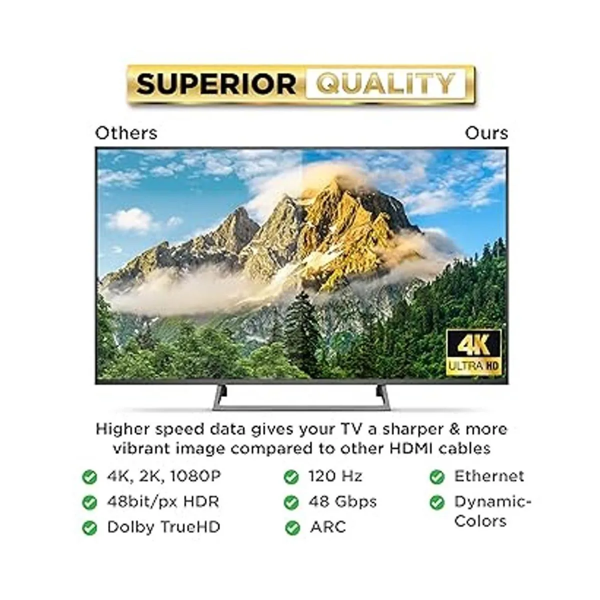 4K HDMI Cable: Male to Male HDMI Cable Supports 4K Video 60Hz, 2K, 1080P, 48 bit/px HDR color depth, TrueHD 7.1, Audio Return Channel ARC Ethernet