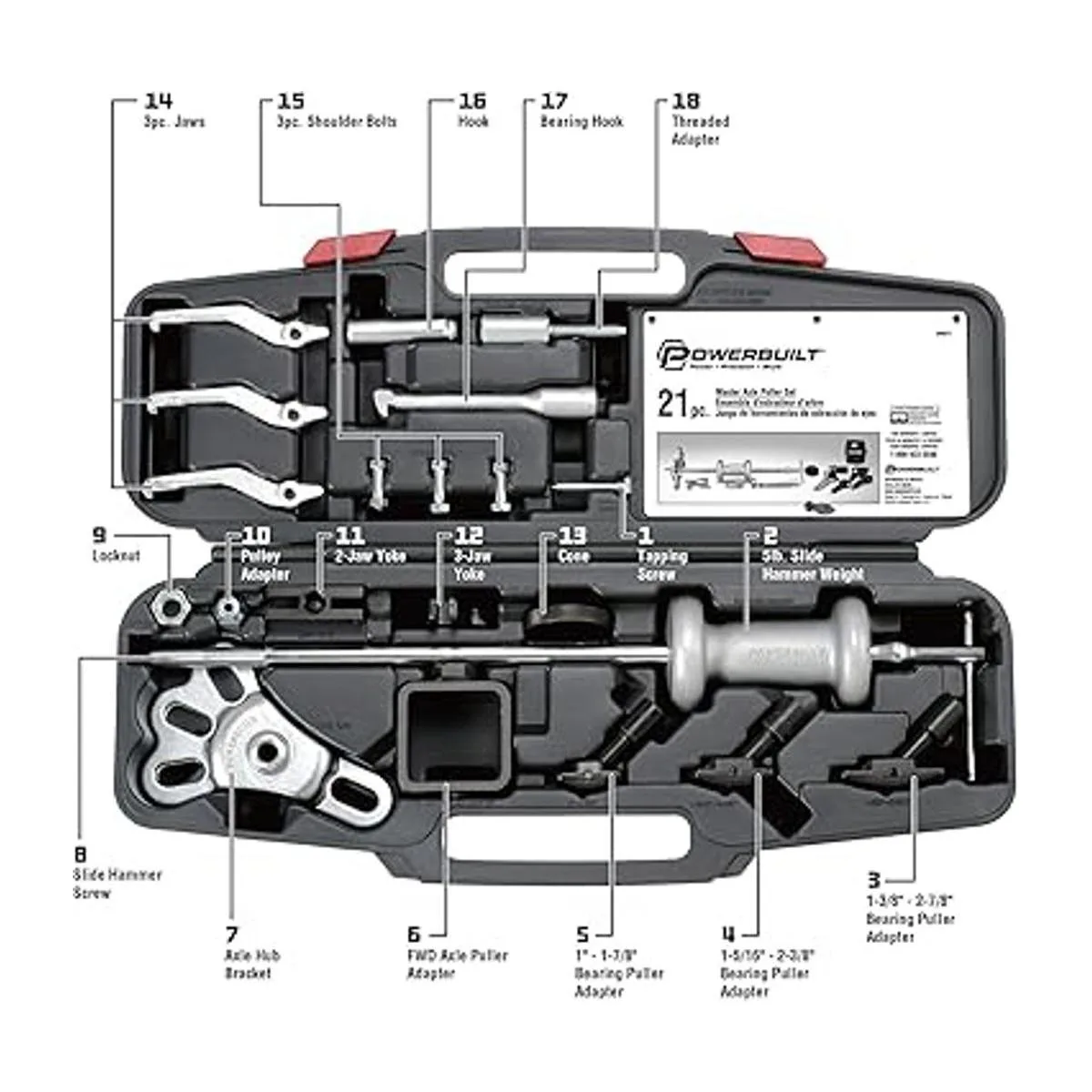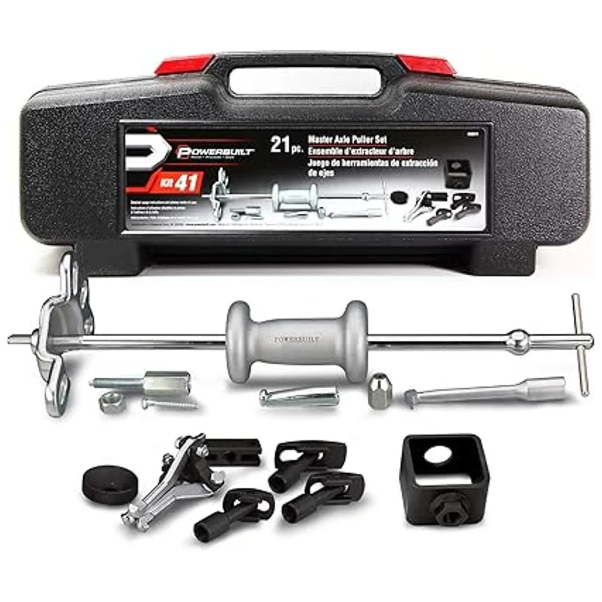 Powerbuilt Juego de herramientas de extracción de eje maestro, quitar la parte delantera y trasera del coche, rodamientos y sellos, kit de reparación de vehículos de 21 piezas, 648611