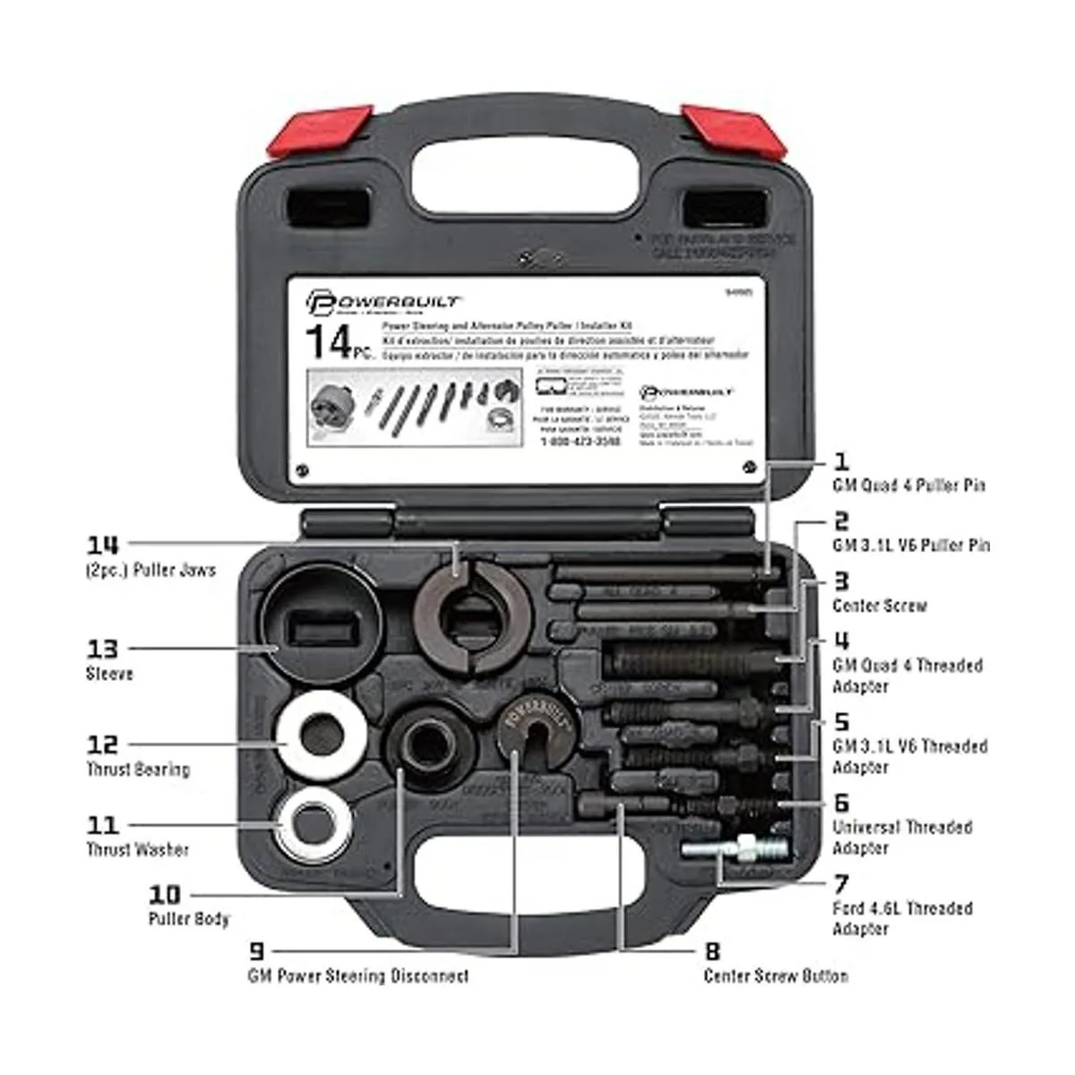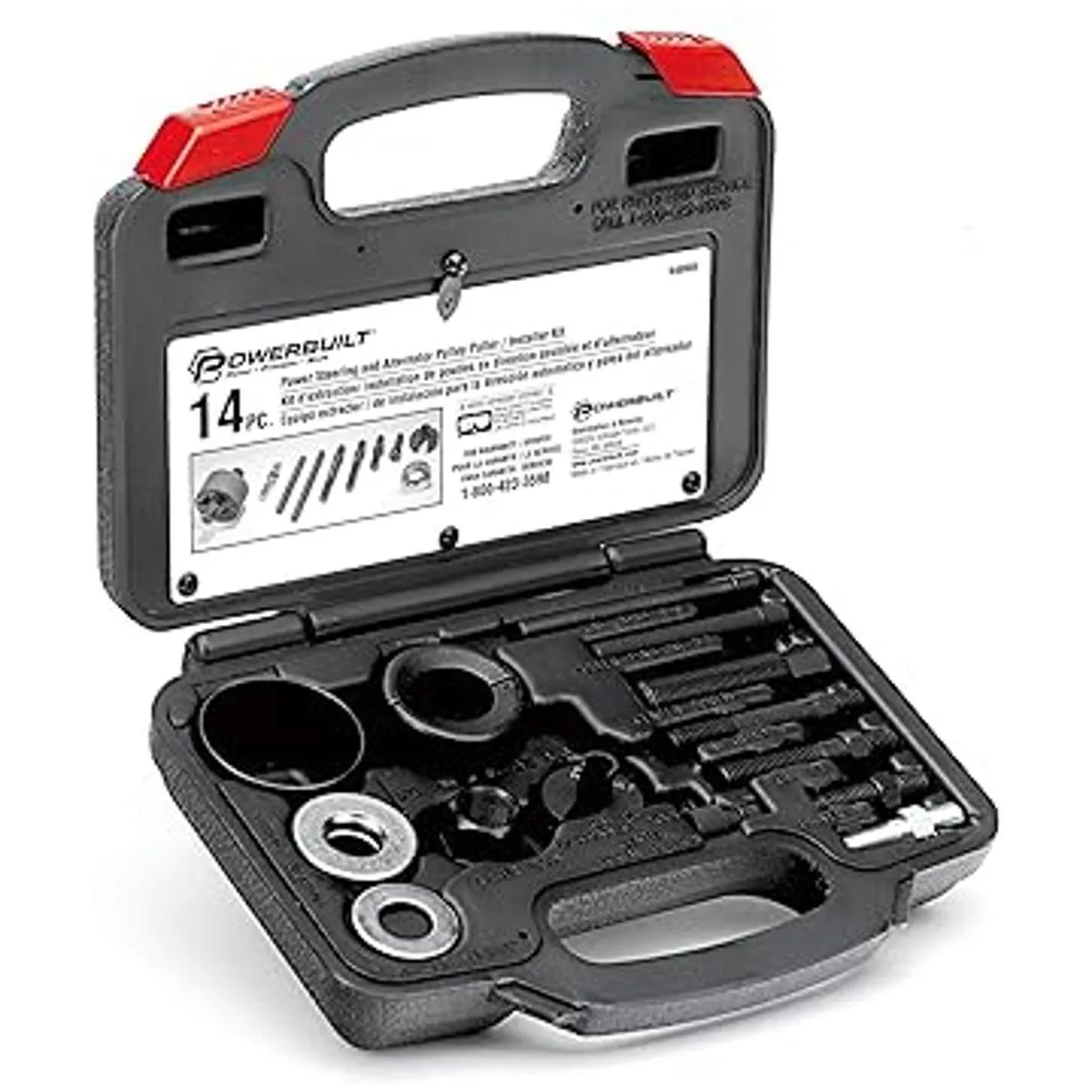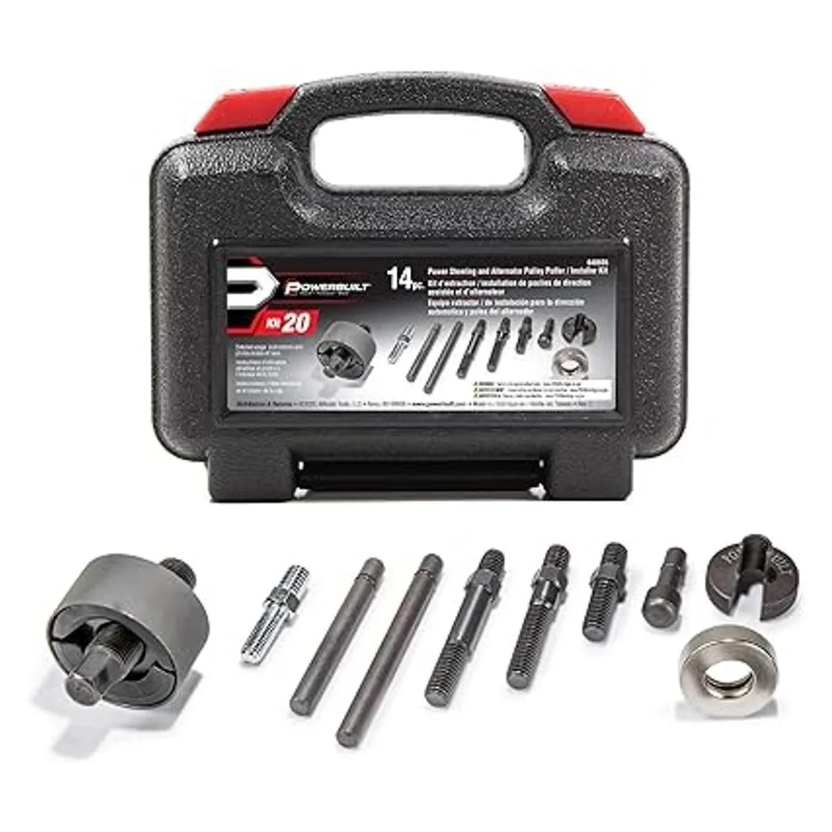 Powerbuilt Juego de herramientas de extracción e instalación de polea de dirección asistida, reemplazo de bomba de dirección del vehículo, herramientas de reparación de automóviles, funda de almacenamiento 648605