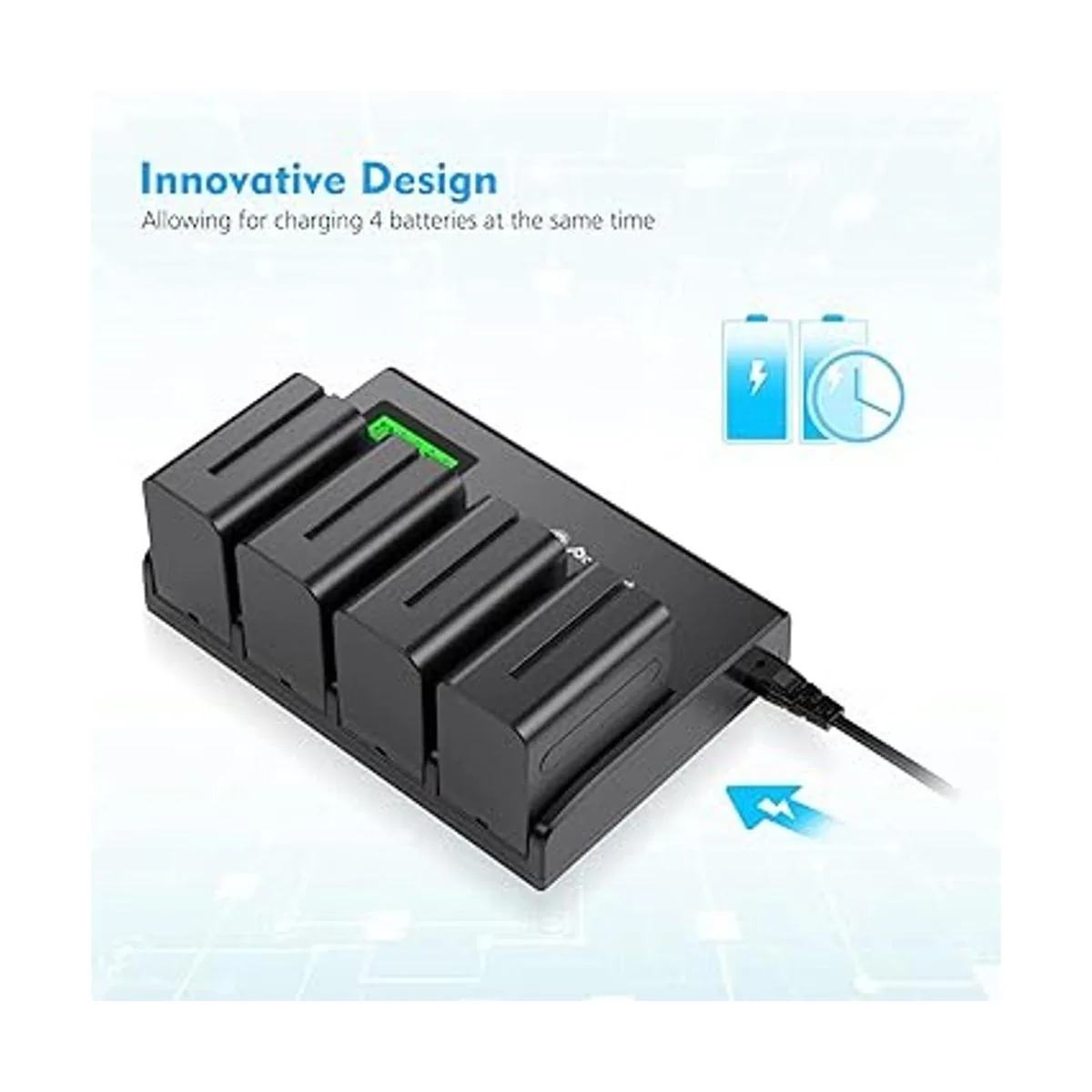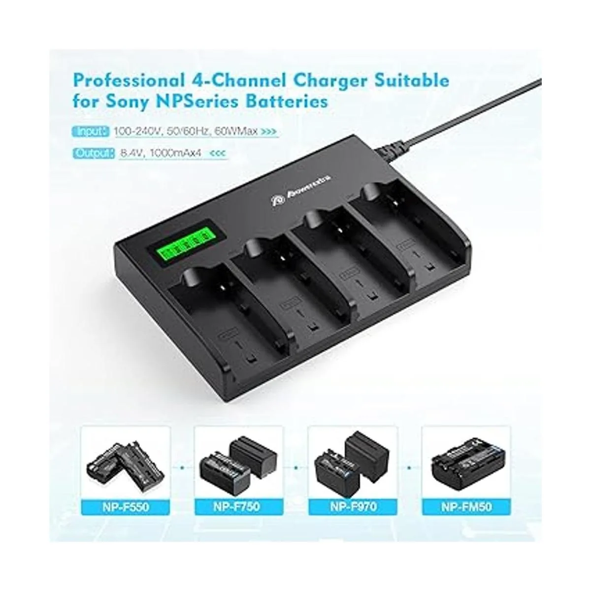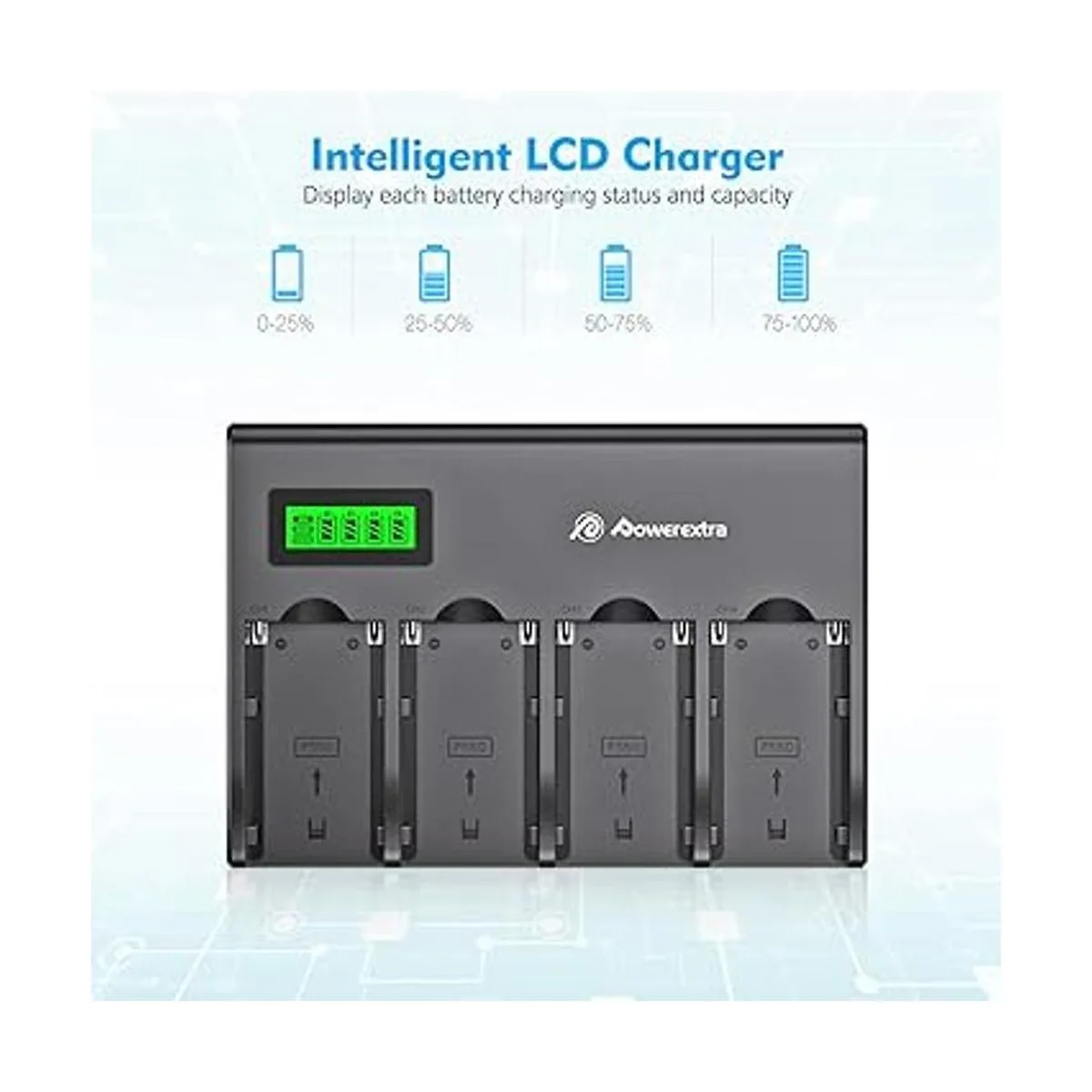 Powerextra Cargador de batería de 4 canales con pantalla LCD para Sony NPF970, NPF960, NPF950, NPF930, NPF770, NPF750, NPF570, NPF550