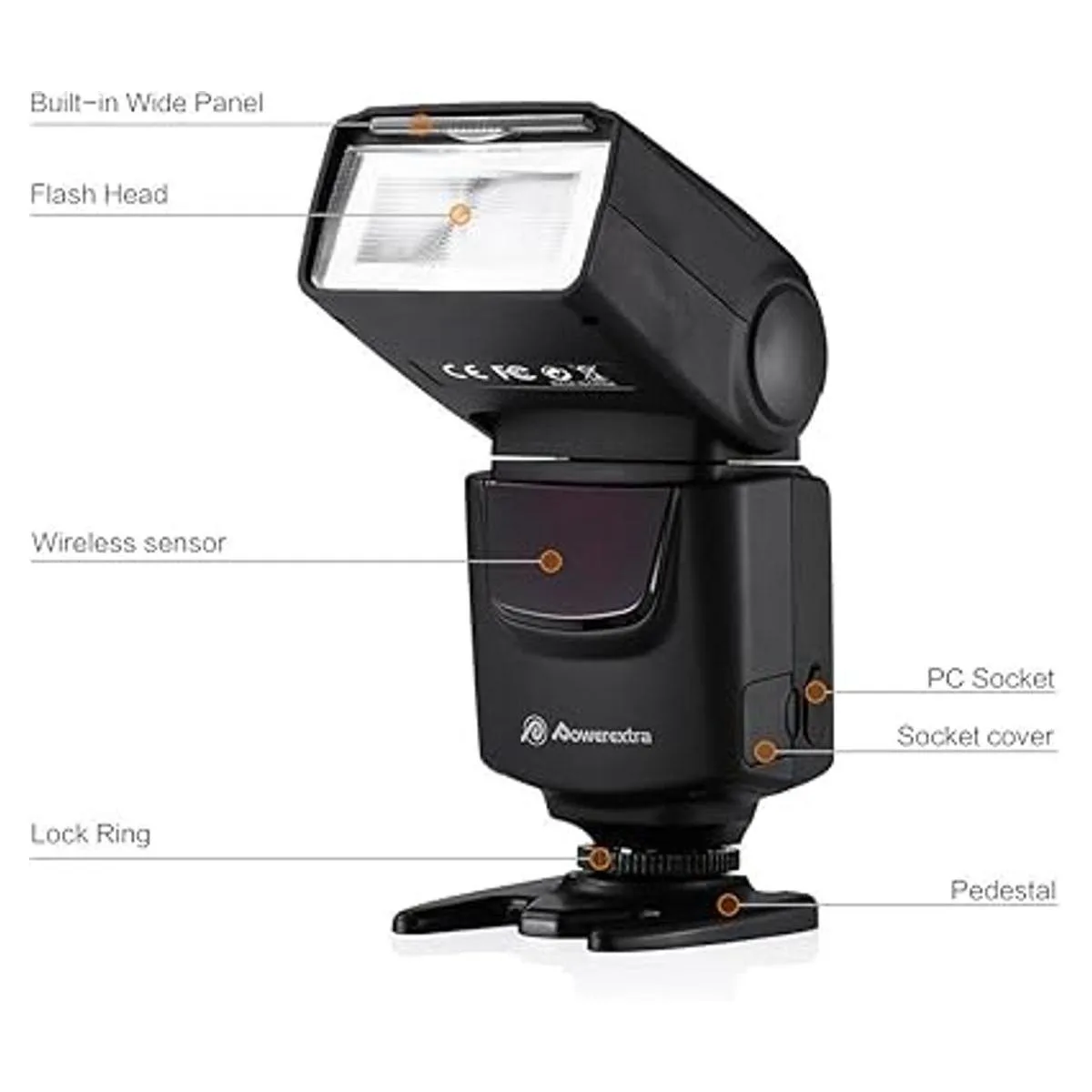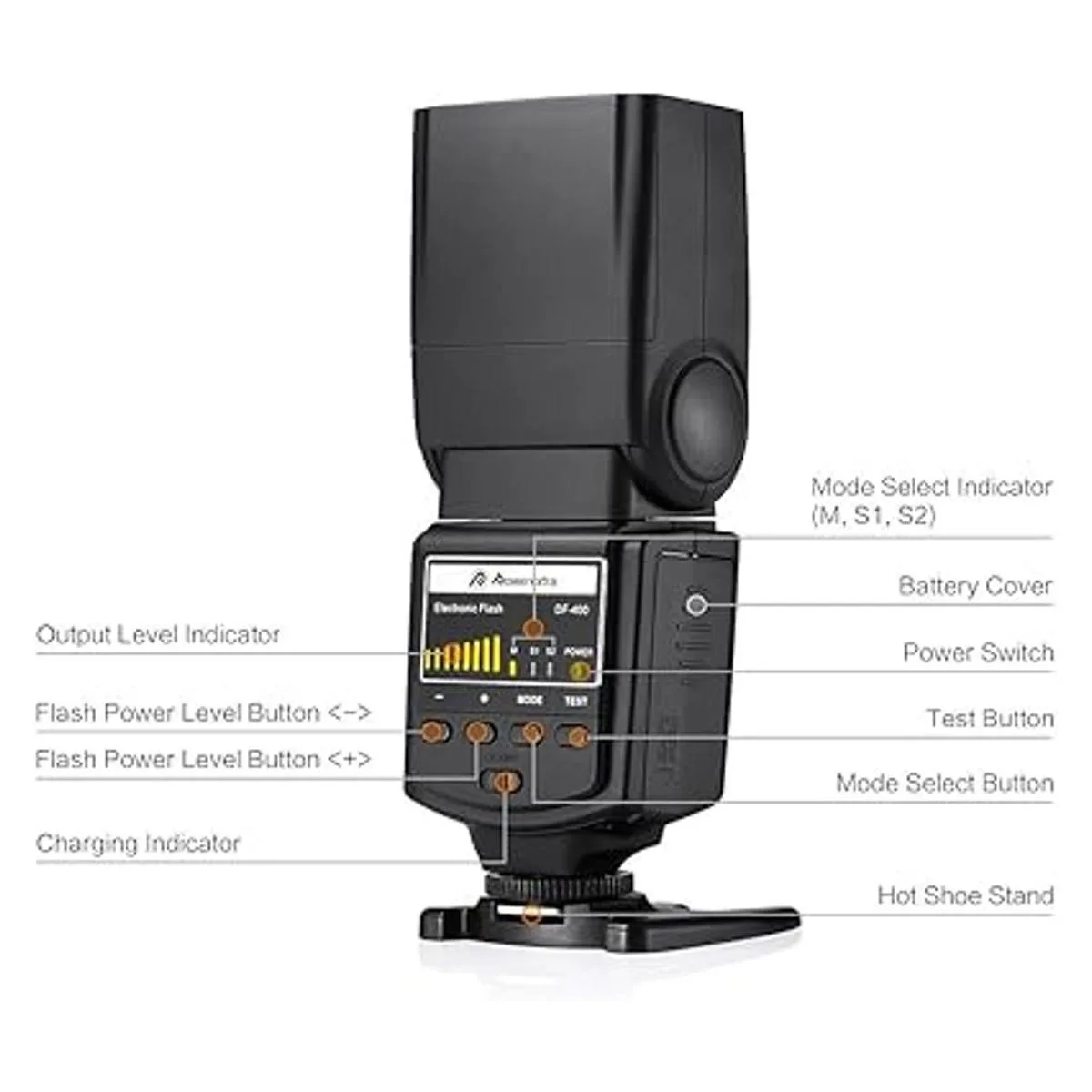 Powerextra Flash profesional de cámara DF400 Speedlite para Canon Nikon Pentax Samsung Fujifilm Olympus Panasonic Sigma Minolta Leica Ricoh DSLR y cámaras digitales con zapata de un solo contacto