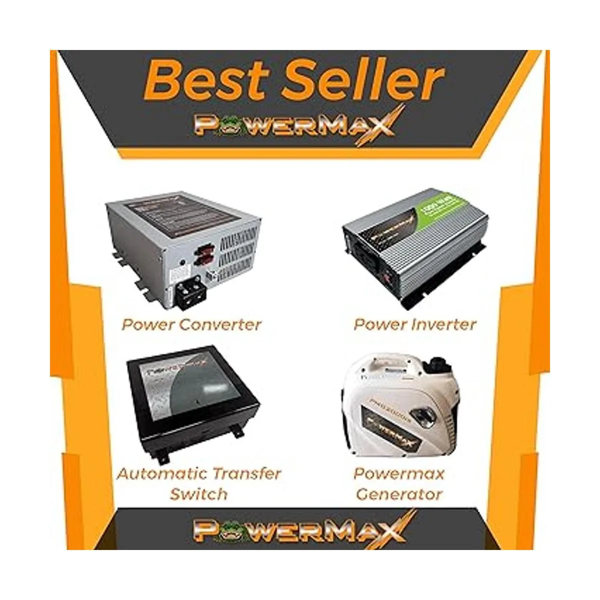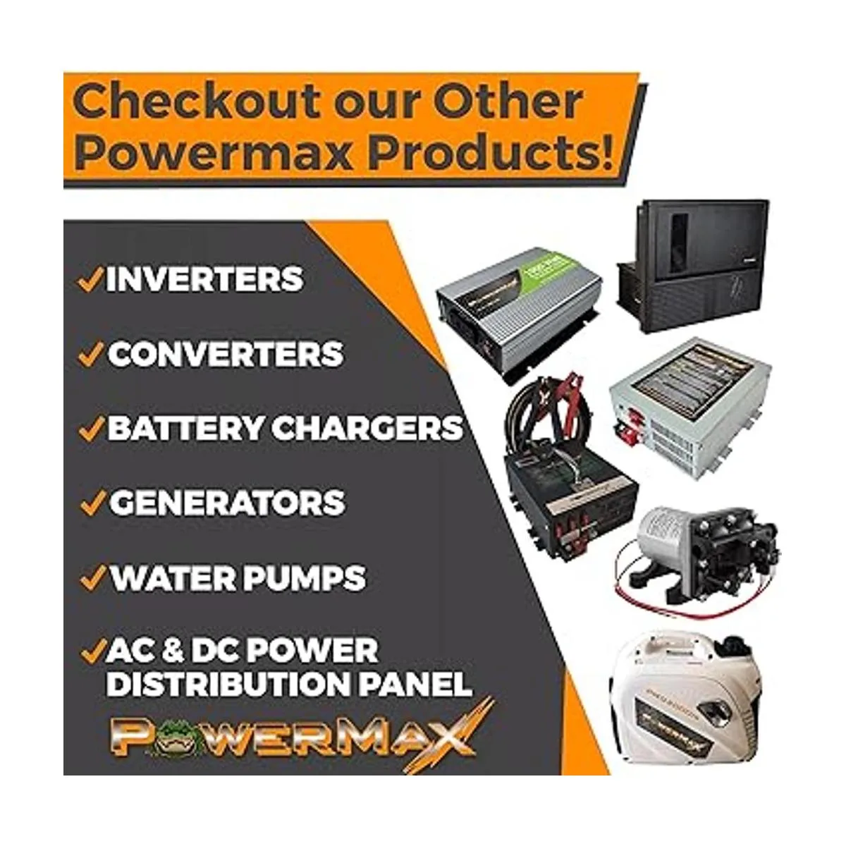 Powermax PM355LK Fuente de alimentación de 55 amperios y 12 voltios reemplazo para WFCO WF9855 cargador de batería con modo de carga inteligente de 3 etapas, ventilador de refrigeración integrado y luz indicadora LED, compatible con litio