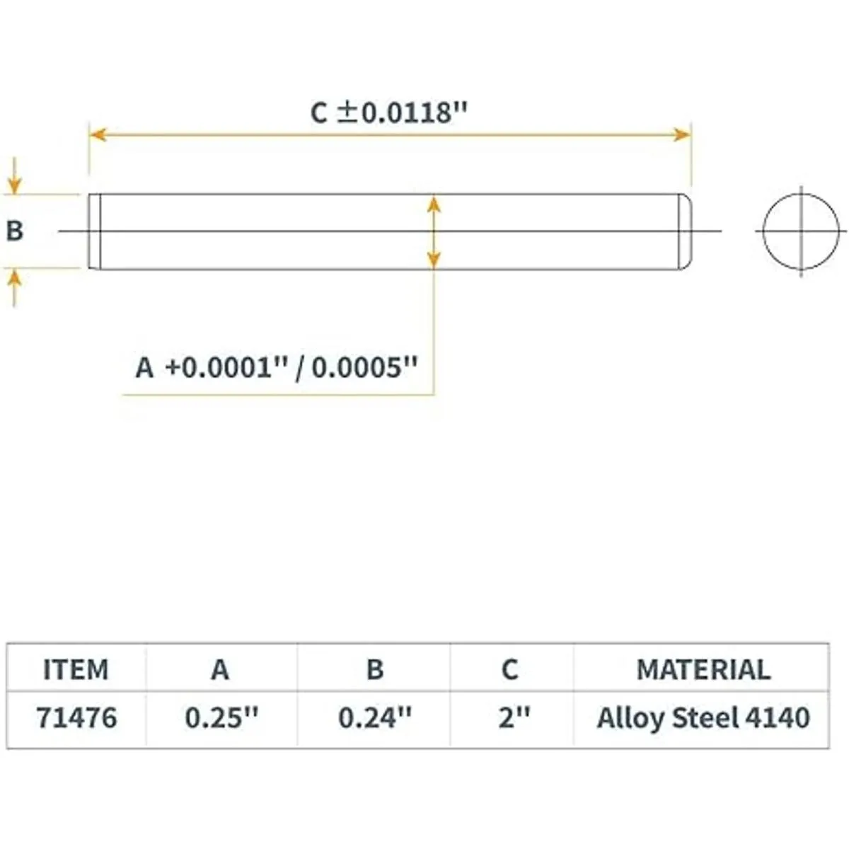 POWERTEC 71476 Pasadores de acero endurecido de 14 pulgadas, tratados con calor y con forma precisa para una alineación precisa, paquete de 10
