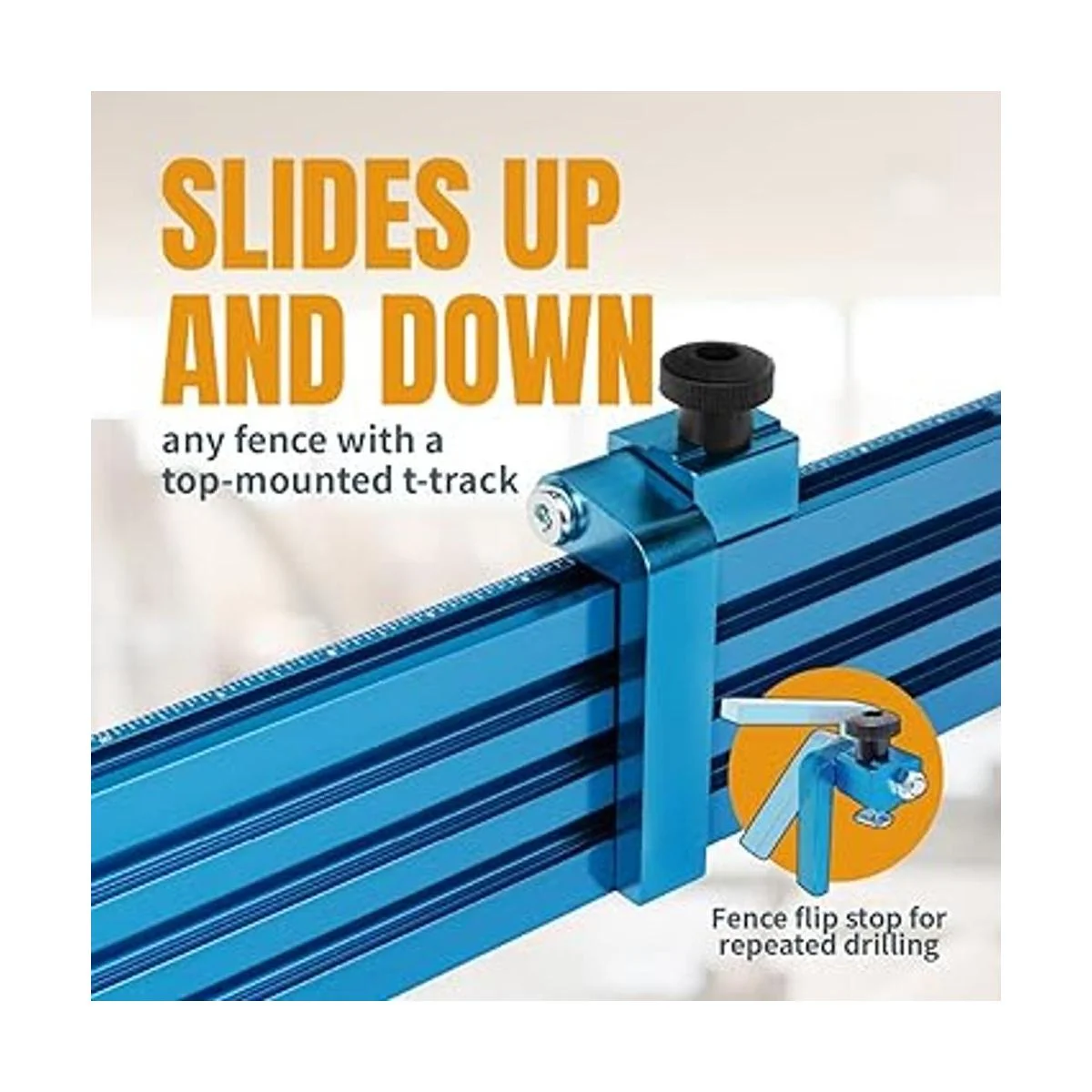 Valla multipista en T: escala grabada con láser, 24 pulgadas de largo con una rectitud excepcional. Perfil reversible para medida izquierda o derecha, espaciada de 3/4 pulgadas en el centro, 3/4 pulgadas de grosor y 3 pulgadas de alto. Esta herramienta multifuncional acepta los sujetadores de accesorios más comunes de 1/4 pulgadas, pernos en T de 5/16 pulgadas y pernos hexagonales de 1/4 pulgadas. Incluye los soportes y los accesorios necesarios para sujetar a tu mesa ranurada en T.