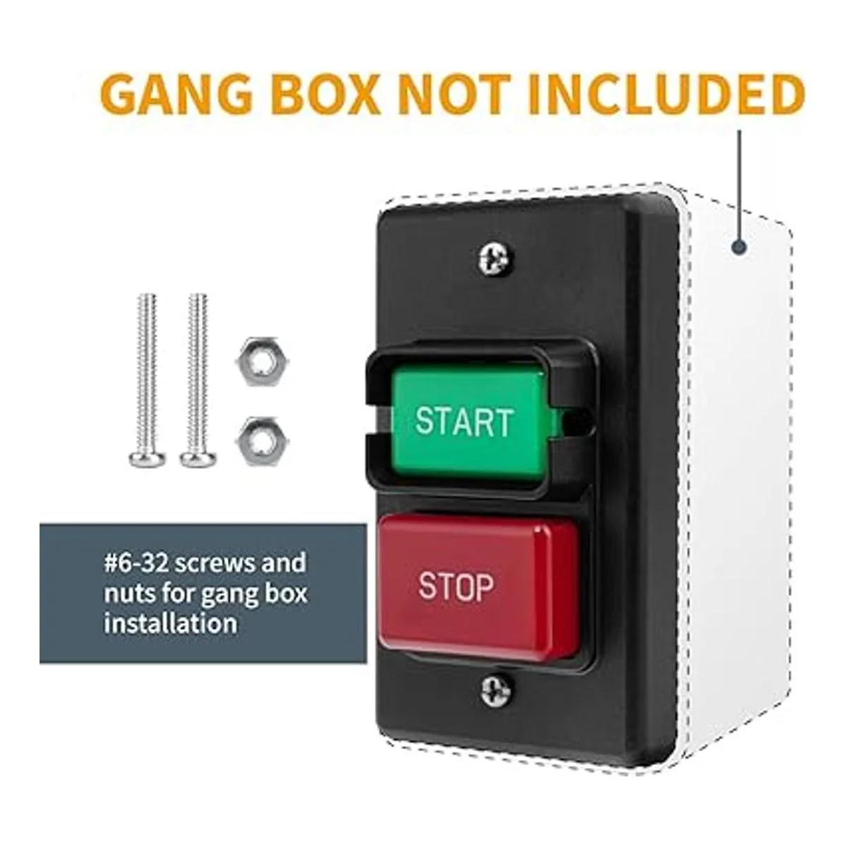 POWERTEC 71652 Interruptor de encendidoapagado monofásico de 110220 V con tornillos para instalación de caja de pandillas, se adapta a sierra de mesa, mesa de enrutador, prensa de taladro, sierra de banco, sierra de banda