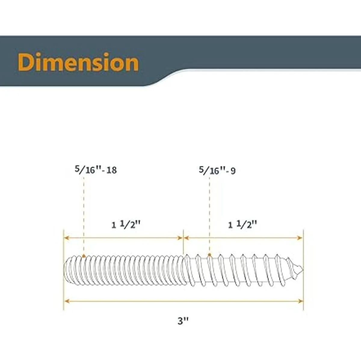 Especificaciones: Longitud 3 pulgadas Diámetro 5/16 pulgadas Número de hilos 18 Densidad Grueso