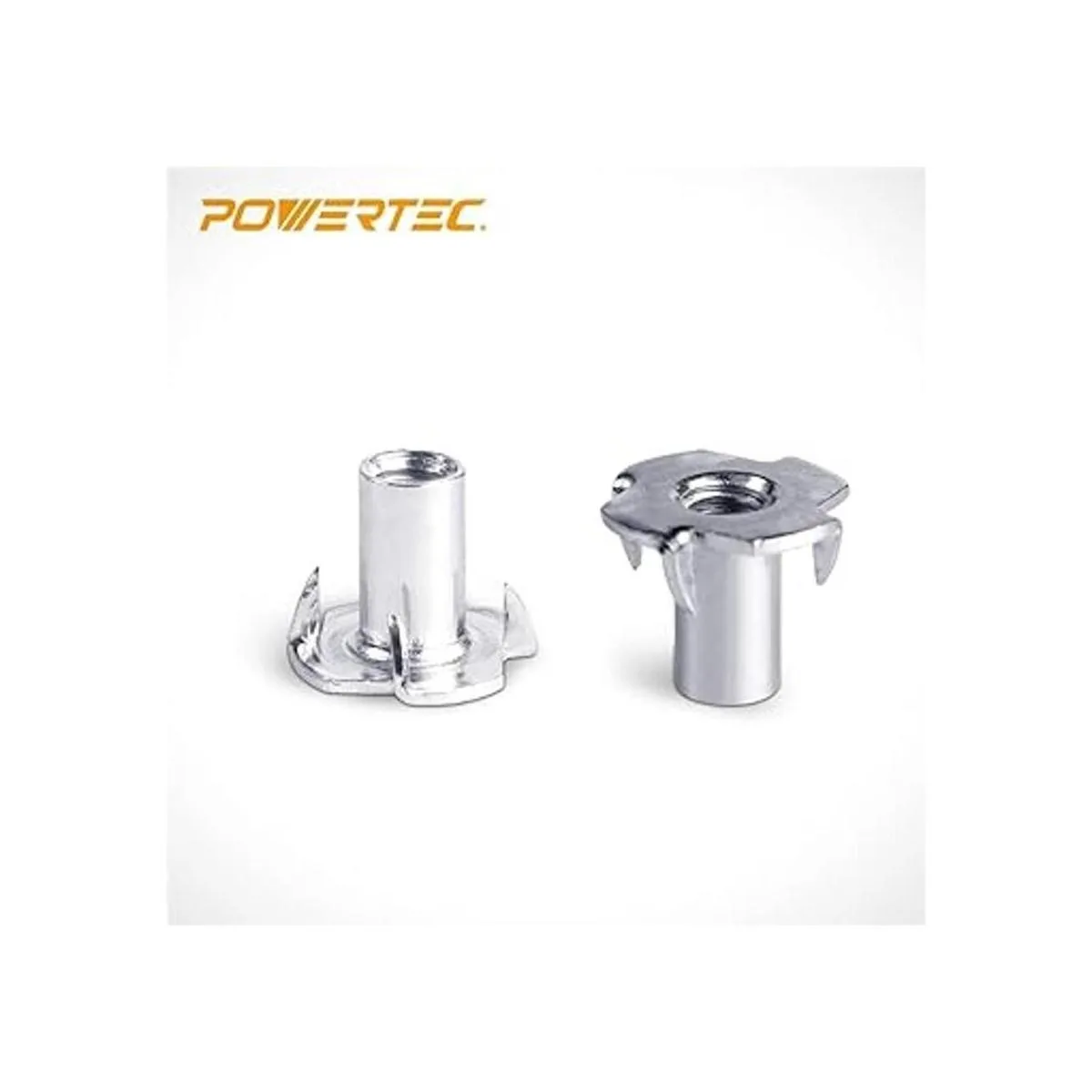 POWERTEC QTN1102 4 T Paquete de 50 Tuerca en T con puntas de pulgada de 20 y 916 pulgadas Insertos roscados para escalada y trabajo en madera, 14 20 x 916 pulgadas, paquete de 50