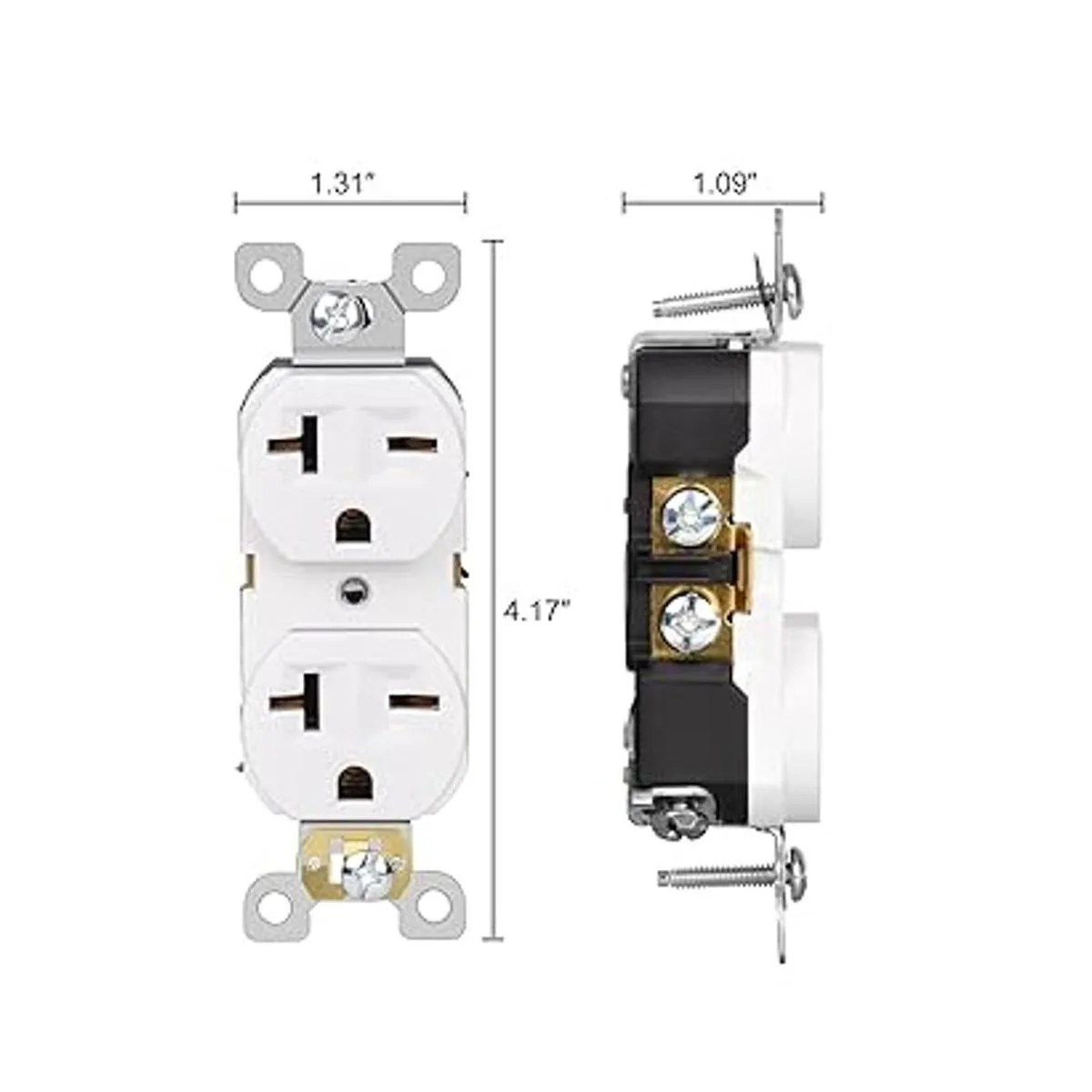 PowGrow Tomacorrientes de receptáculo eléctrico dúplex, 20 amperios, 250 V, toma de pared recta, paquete de 10
