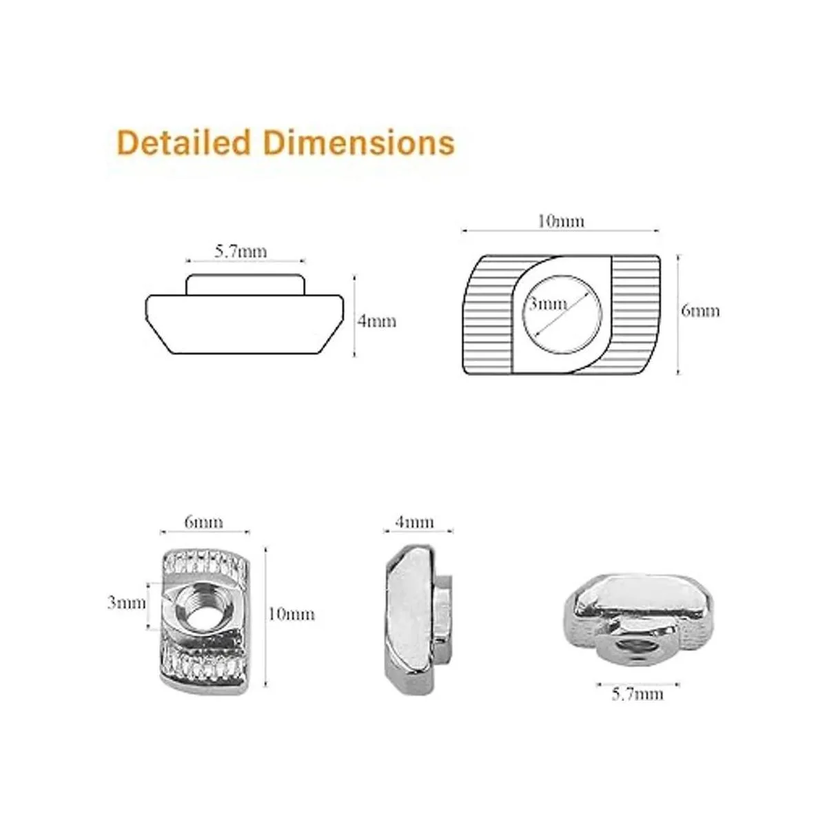 El paquete incluye: 100 tuercas en T M3 de la serie 2020.