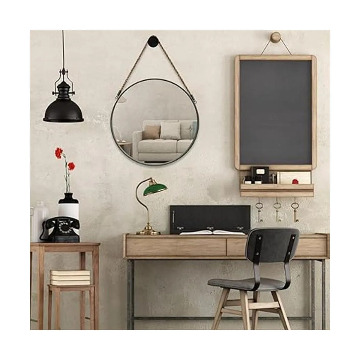 El espejo montado en la pared tiene una cuerda de lino resistente diámetro 0.4 pulgadas y viene con un gancho como regalo, fácil de colgar.