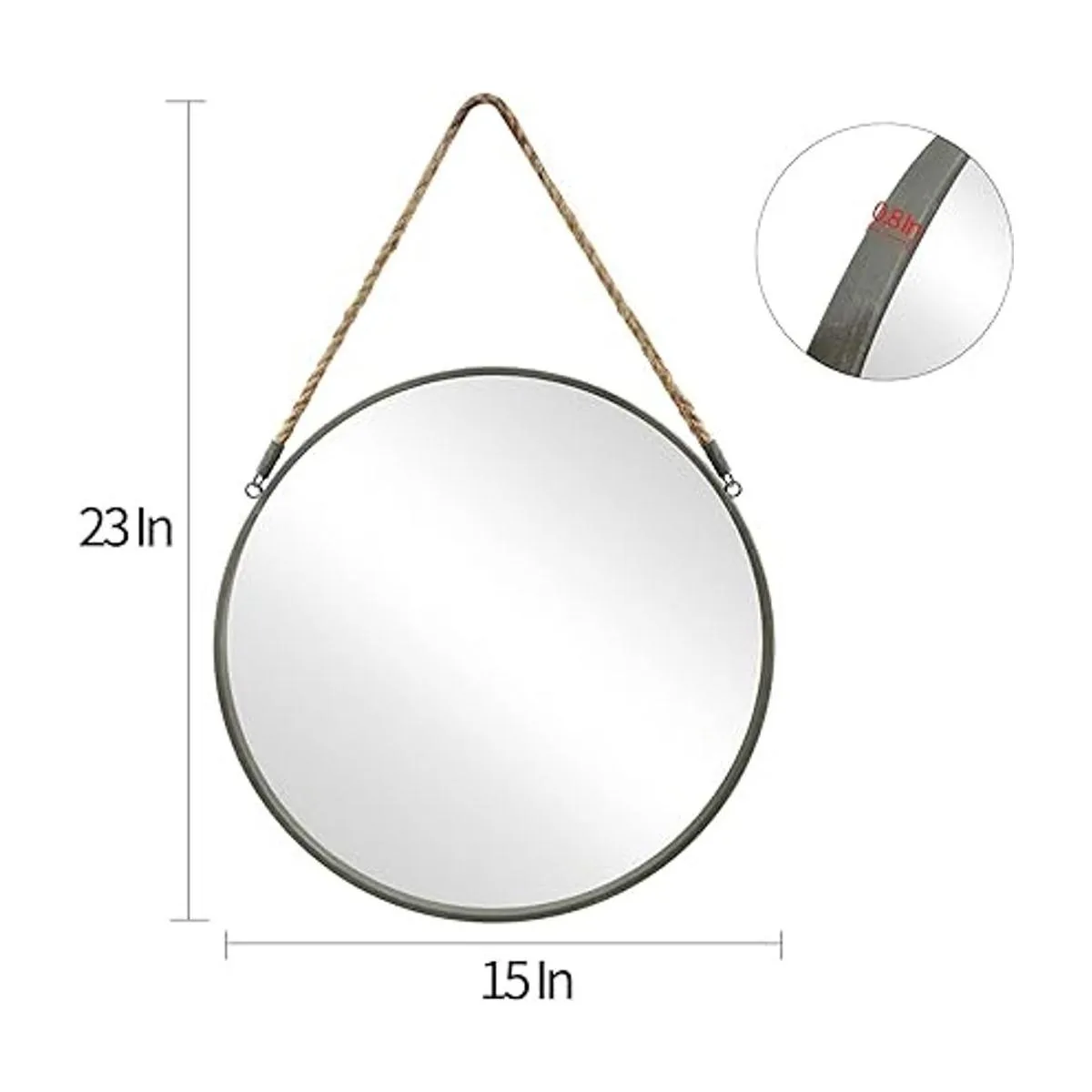 POZINO Espejo redondo de pared de 15 pulgadas con acabado rústico, marco de metal con cuerda colgante para baño, dormitorio, sala de estar, dormitorio o entrada