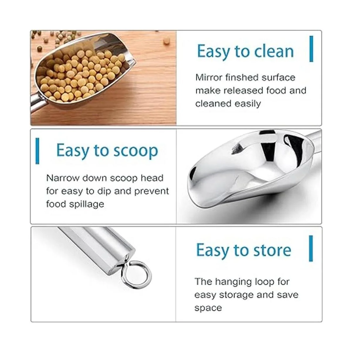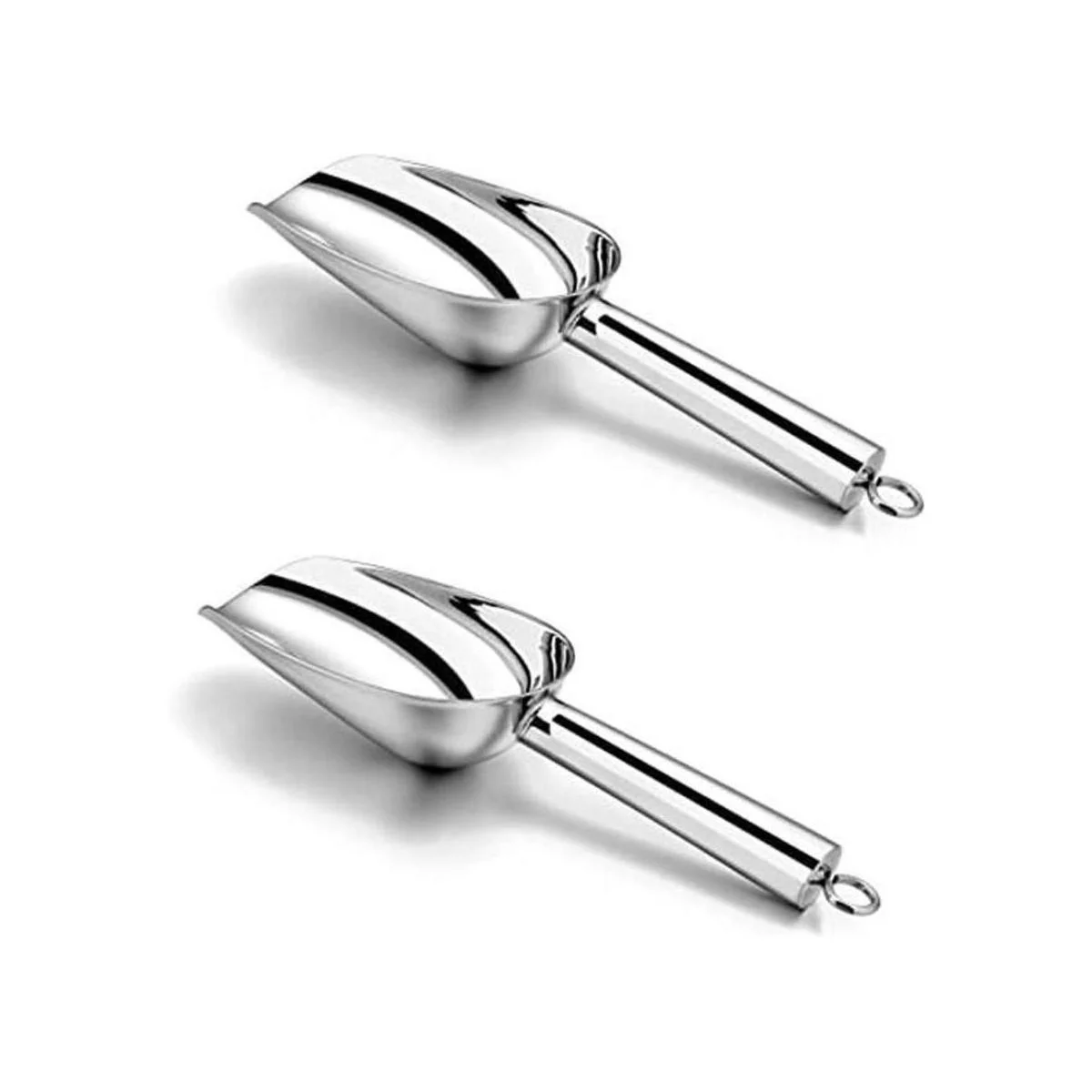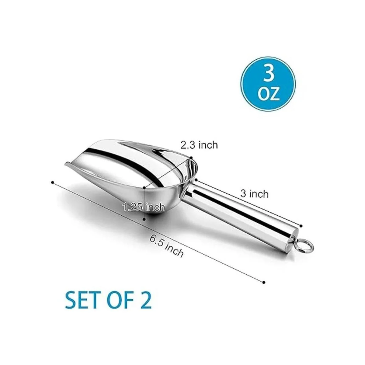 3 onzas, 2 piezas: 6.5 pulgadas de largo x 2.3 pulgadas de ancho x 1.25 pulgadas de alto, el juego de 2 piezas satisfará cualquier necesidad de recoger alimentos secos, cubitos de hielo, dulces, granos de café, palomitas de maíz, granos en tu hogar, bar, boda y fiesta, bar y bufé. Este tamaño mini es lindo y ligero, fácil de llevar a actividades al aire libre, como camping