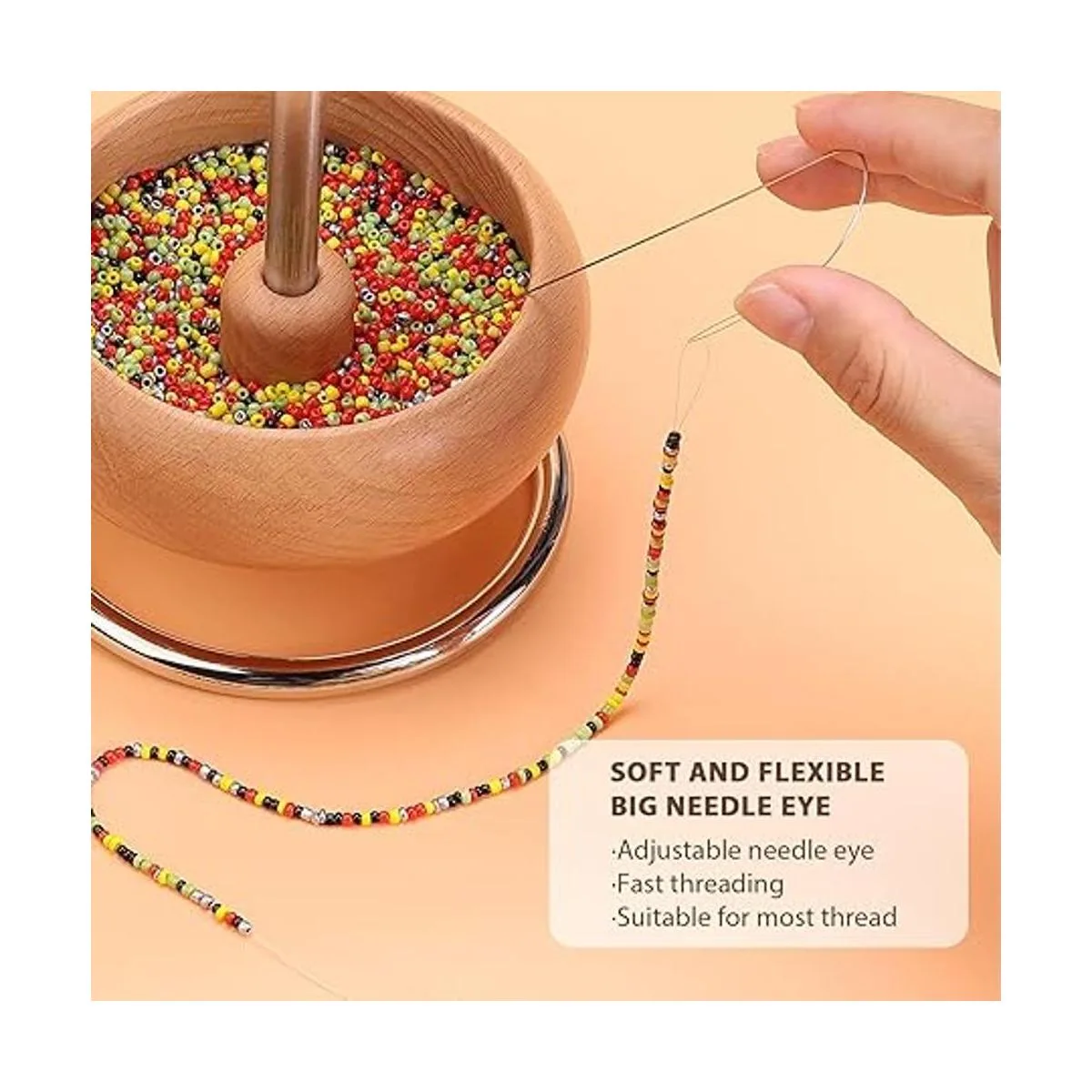 Adecuado para todo tipo de spinners de cuentas: esta aguja de cuentas de semillas está especialmente diseñada para cargadores giratorios de cuentas y es un accesorio esencial para cargadores de cuentas, tanto los spinners normales como eléctricos pueden utilizarla. Nota: Este producto solo contiene agujas, no incluye hiladores de cuentas, cuentas de semillas y cuerdas