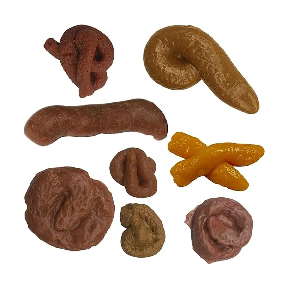 Paquete: el paquete viene con 8 caca falsa en diferentes formas, que es un regalo ideal para bromas.