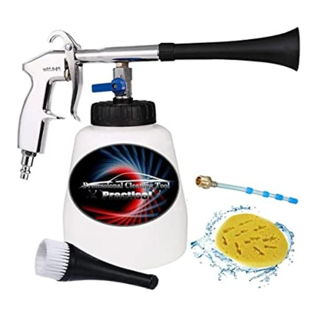 Practisol Pistola de limpieza de coche de alta presión para interiores de automóvil, kit de detalles automáticos, suministros con botella de espuma de 1 L y cepillo de limpieza, pistola de soplado de aire, herramientas esenciales para detalles de automóvil enchufe macho de 14 pulgadas