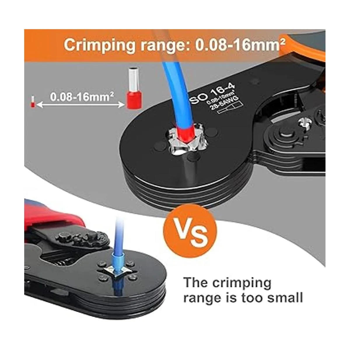 Rango de tamaño de crimpado: engarzado de alambre de mandíbula cuadrada de 16 a 4 para hacer que el crimpado sea más firme. Adecuado para terminales de virola premium de 0,0816 mm 285 AWG, asegurando precisión de crimpado.