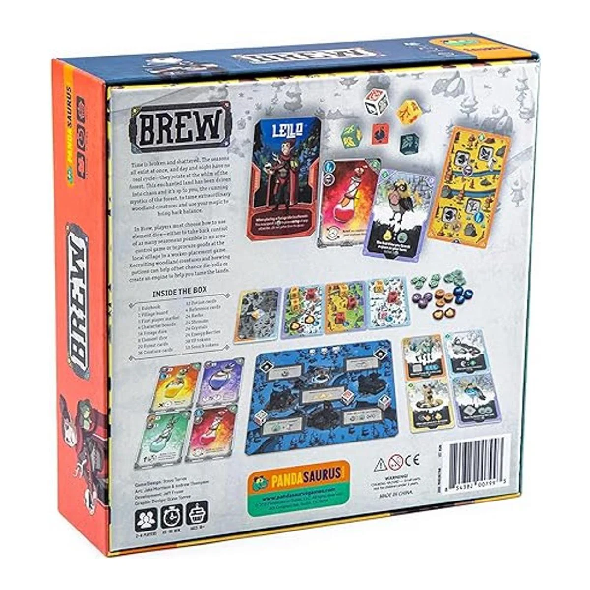 Preparación Juegos de Pandasaurus, los jugadores eligen cómo usar los elementos, dados esta tierra encantada ha sido impulsada al caos y depende de ti recuperar el equilibrio, tiempo de juego de 45 a 90 minutos, a partir de 10 años